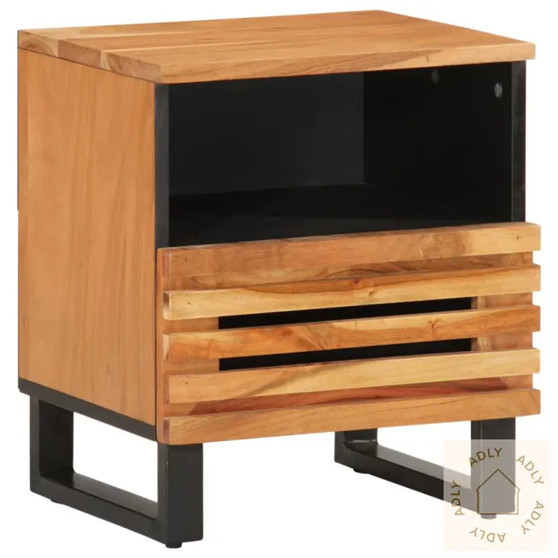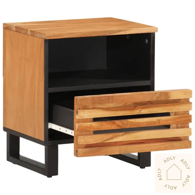 Heltre akasie: Møbelet er laget av heltre akasie, et materiale kjent for både sin styrke og langvarige holdbarhet. Akasietre har et naturlig, vakkert åremønster og kommer i flere livlige nyanser – noe som gir hvert produkt sitt eget særpreg. Denne tresorten brukes ofte til både robuste hagemøbler og utendørsmøbler, takket være dens motstand mot skader og slitasje.Rikelig med oppbevaringsplass: Nattbordet gir deg åpne hyller og smarte løsninger for oppbevaring, slik at du enkelt kan holde orden på bøker, magasiner og pyntegjenstander. De åpne hyllene gjør det lett å nå favorittbøkene dine samtidig som de gir rommet et løft rent visuelt.Stabile og holdbare ben: Benene i stål gjør møbelet ekstra stødig, og gir god støtte og sikkerhet i hverdagen. Dette gir både stabilitet og sikrer at nattbordet tåler daglig bruk over lang tid.Materialer: heltre akasie, konstruert tre og stål gir kombinasjonen av estetikk og soliditetMål: 40 x 34 x 46 cm (L x B x H)Med ett romMed én praktisk skuffMontering kreves: ja