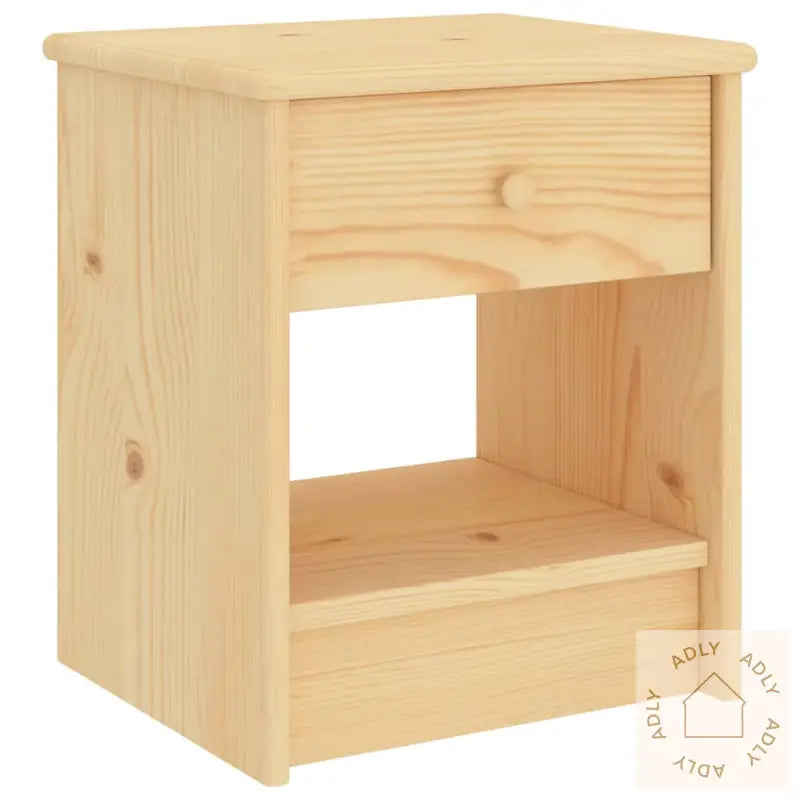 Nattbordene er laget av heltre furu, et slitesterkt materiale som gir møbelet soliditet og stabilitet. Det nøye håndverket sammen med de naturlige og vakre trekornene gjør hvert nattbord unikt, slik at ingen blir helt like. Du får altså et helt spesielt møbel unikt for ditt soverom. Med én romslig skuff og en åpen hylle får du god oppbevaringsplass. Her kan du enkelt organisere alt fra bøker til personlige eiendeler, og ha viktige ting lett tilgjengelig ved senga. Topplaten i heltre furu er robust og gir plass nok til å sette en nattlampe, vekkerklokke eller bare dekorative ting du liker å ha nært på natten.
