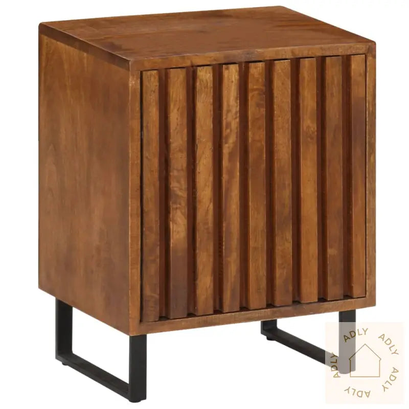 Materialer: heltre mango med honningbehandling og jernrørbenMål: 40 x 30 x 50 cm (B x D x H)Polert og lakkert for langvarig finishMed 1 dør for diskret oppbevaring