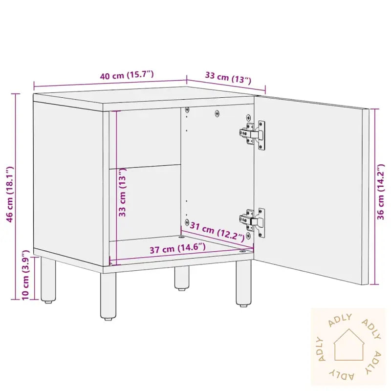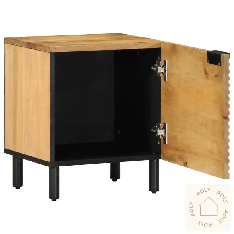 Robust og stabilt materiale: Laget av heltre mango – et sterkt og slitesterkt tropisk treslag som er høyt verdsatt for møbelproduksjon på grunn av sin lange levetid. De naturlige og vakre trekornene gjør hvert nattbord helt unikt, og gir hjemmet ditt et eksklusivt preg som aldri blir likt noe annet møbel. Heltre mango tåler daglig bruk og er derfor ideelt både til soverommet og stua.Rikelig med lagringsplass: Dette nattbordet har god plass med praktiske rom til magasiner, bøker, briller eller det du trenger å ha lett tilgjengelig når du slapper av eller skal sove. Det hjelper deg å holde soverommet ryddig og organisert på en enkel måte.Allsidig bruk: Nattbordet fungerer ikke bare som nattbord ved sengen, men også som et stilig sidebord i stua, ekstra oppbevaring på kontoret, eller som en smart løsning i alle rom der du trenger litt ekstra plass. Kombiner gjerne med andre hagemøbler eller bokhyller og stående hyller for et gjennomført uttrykk.Metallben: De solide metallbena gir skapet ekstra støtte, noe som sikrer både sikkerhet og stabilitet over tid. Designet gir samtidig en moderne touch og løfter møbelet opp fra gulvet for enklere rengjøring under.Godt å vite: