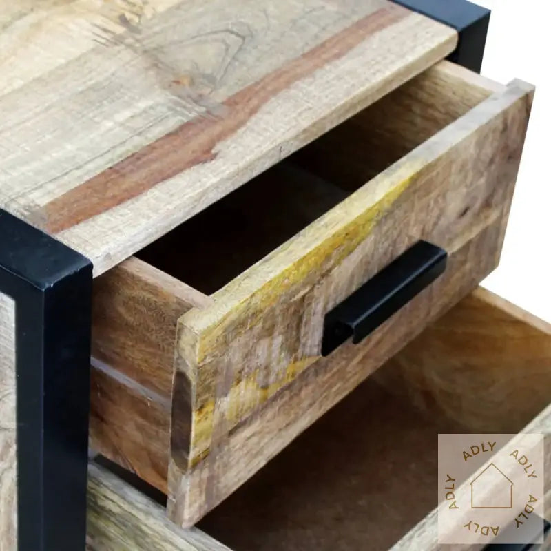 Dette bordet er laget av heltre mango, og gir enhver innredning et tøft, moderne preg med sin kule, industrielle stil. Bordet kan brukes på flere forskjellige måter, for eksempel som nattbord ved sengen, ende- eller sidebord i stua, eller som et allsidig og unikt oppbevaringsmøbel til hjemmet – perfekt for deg som ønsker møbler med særpreg.