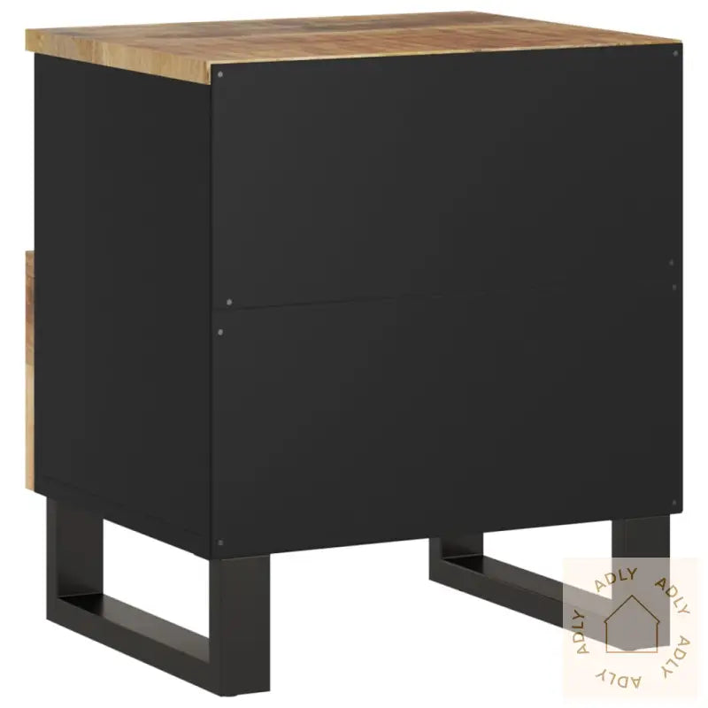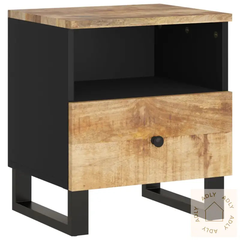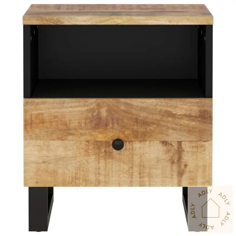 Heltre mango: Nattbordet er laget av heltre mango, et slitesterkt løvtre med vakre, naturlige variasjoner i treverket. Siden heltre mango er kjent for både styrke og holdbarhet, får du et møbel som tåler å bli brukt over tid – både som nattbord eller endebord ved sofaen.Rikelig med lagringsplass: Med én romslig skuff og ett åpent rom, får du plass til alt fra bøker, telefon og briller til små pyntegjenstander eller andre hverdagslige nødvendigheter.Solid topp: Den solide toppen gir en robust overflate der du enkelt kan sette kaffekoppen på morgenen, stille favorittboka di eller noen dekorative elementer – praktisk uten at du trenger å bekymre deg for slitasje.Metallben: De solide metallbena sørger for at nattbordet står stødig, og gir både stabilitet og en kul kontrast til det varme treverket. Dette gjør det like funksjonelt som dekorativt, og det passer godt sammen med hagemøbler eller andre industrielle detaljer.Merk: