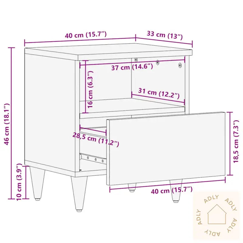 Robust og stabilt materiale: Laget av heltre mango – et tropisk og slitesterkt løvtre som virkelig egner seg for møbelproduksjon. Siden hvert nattbord har sine egne karakteristiske, vakre trekorn og naturlige variasjoner i farge, får du et møbel som er både unikt og varig.Rikelig med lagringsplass: Nattbordet gir god plass til å oppbevare bøker, briller, magasiner og andre ting du vil ha rett ved sengen. Alt holdes ryddig organisert, og du slipper å lete etter det nødvendige før leggetid.Allsidig bruk: Dette praktiske møbelet passer ikke bare som nattbord, men også som sidebord i stua eller i gangen, og gir deg ekstra oppbevaringsmuligheter akkurat der du har behov for det. Flott som tilskudd til både hagemøbler og annen oppbevaring.Treben: De solide bena i tre gir nattbordet stabilitet og gjør at det står stødig, samtidig som de fremhever det naturlige uttrykket som heltre mango gir.Godt å vite: