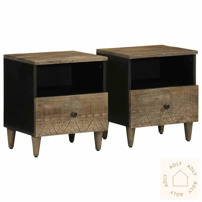 Hvert produkt er helt unikt med egne nyanser og kornstruktur fra treverket, noe som gir ditt nattbord en eksklusiv og personlig touch. Fargen og kornmønsteret kan derfor variere naturlig mellom hvert møbel.Farge: lysegråMateriale: Mango lys grå finish med utskjæringsfront, konstruert tre, metallMål (hvert): 40 x 33 x 46 cm (B x D x H)Høyde ben: 10 cmMontering kreves: jaLeveransen inneholder:2 x nattbord