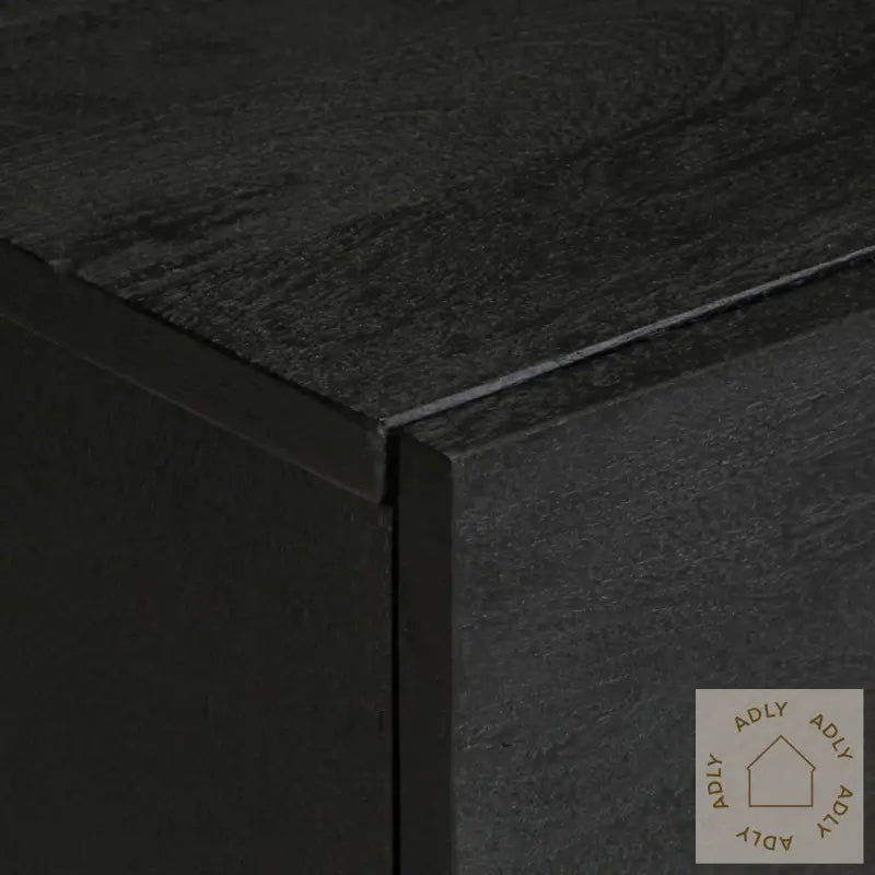 - Materiale: Massivt mangotre med sandblåst svart finish, konstruert tre