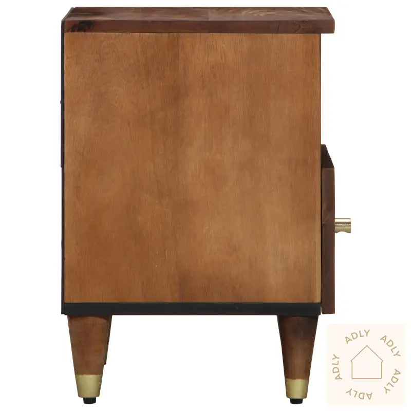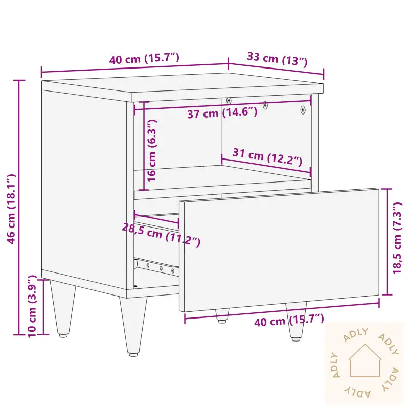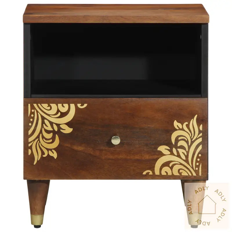 Med sitt unike blomsterdesign fungerer disse nattbordene som et blikkfang i rommet, og gir en følelse av kvalitet og raffinement som passer godt sammen med både klassiske og moderne innredningsstiler.Den praktiske uttrekksskuffen gjør det lett å rydde bort småting som lesebriller, telefon eller kveldslektyre, noe som bidrar til et mer minimalistisk og ryddig uttrykk i soverommet.Laget av bærekraftig mangotre kombinert med solid konstruert tre, får du ikke bare et nattbord som ser bra ut, men også møbler som tåler daglig bruk og tilbyr langvarig stabilitet.Den glatte overflaten fremhever materialets naturlige skjønnhet og gjør vedlikehold enkelt – tørk kun over med en fuktig klut for å holde møblet rent og pent.Med kompakte mål på 40 cm lengde, 33 cm bredde og 46 cm høyde passer settet perfekt i mindre rom eller leiligheter, samtidig som det gir overraskende mye oppbevaringsplass. Perfekt for voksne som vil ha det ryddig og stilig på soverommet uten å fylle opp plassen.Antall elementer: 2Farge: BrunMønster: BlomsterdesignForm: RektangulærMateriale: Tre, konstruert treBruksområde: Kun innendørsDeksel følger ikke medPasser spesielt godt til soveromBatterier medfølger ikkeOverflatehøyde: 1,5 cmBenhøyde: 10 cmLeveransen inneholder 2 nattbordMontering kreves, anbefales utført av én person