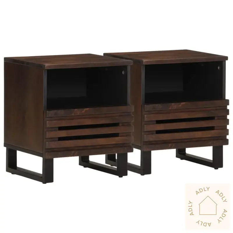 Hver del er unik, med naturlige variasjoner i farger og struktur i heltre mango. Produktet leveres med tilfeldig kornmønster og farge, så du får en helt individuell finish på dine møbler.Farge: brunMaterialer: heltre mango, konstruert tre, stålMål: 40 x 34 x 46 cm (L x B x H)Med 1 romMed 1 skuffMontering kreves: jaLeveransen inneholder:2 x nattbord