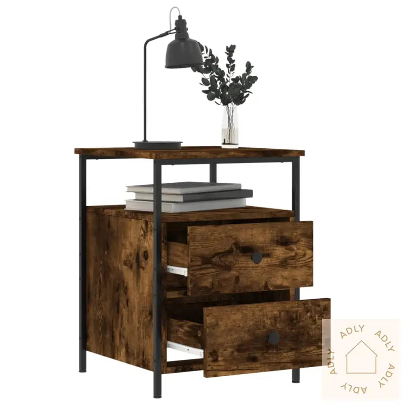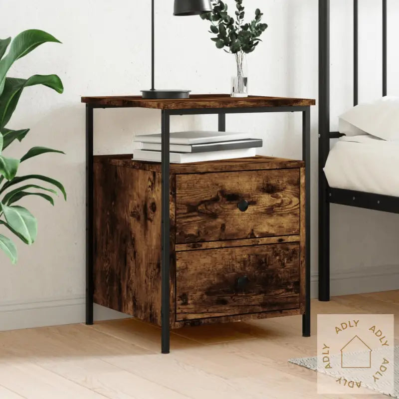 Slitesterkt materiale: Det konstruerte treverket gir en glatt og moderne overflate, samtidig som det gir styrke, stabilitet og ekstra motstand mot fukt. Dette gjør at møbelet holder seg pent lenge, uansett bruk.Stabil ramme: Den solide jernrammen sørger for varig holdbarhet og robust støtte, så du ikke trenger å bekymre deg for vinglete møbler.Rikelig med lagringsplass: Med god plass inni får du enkelt organisert bøker, mobil, briller eller andre småting du vil ha lett tilgjengelig ved sengen eller sofaen – perfekt for deg som liker system og oversikt.Justerbare føtter: Utstyrt med fire justerbare føtter, beskytter nattbordet gulvet ditt mot riper og sørger for stabilitet – selv om underlaget er litt skjevt. Justerbare føtter gir trygghet og fleksibilitet, spesielt om du stadig flytter på møblene dine.Visningsfunksjon: Topplaten har god plass for personlige detaljer som bilder, pynt eller blomster, slik at du får en hyggelig og personlig stemning i rommet.Advarsel:
