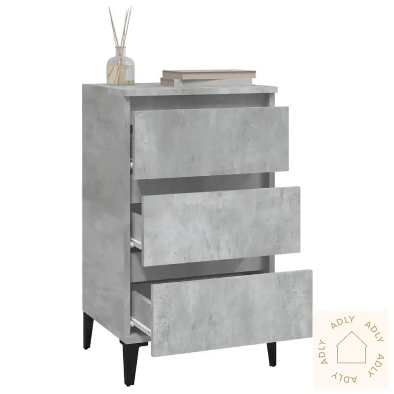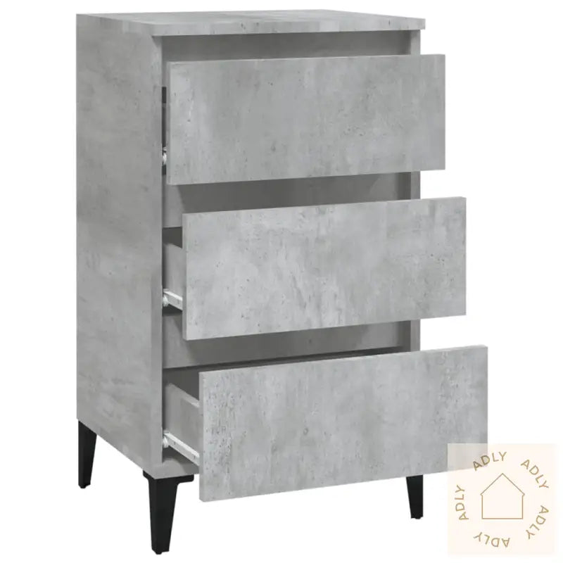 Slitesterkt materiale: Nattbordet er laget av konstruert tre av høy kvalitet, noe som gir en jevn og fin overflate. Materialet er kjent for styrke, god stabilitet og motstandsdyktighet mot fukt – ideelt både for soverom og andre rom der du ønsker solide møbler.Stødige metallføtter: Metallføttene sørger for ekstra stabilitet og øker levetiden. Dette gjør at bordet står stødig, enten du plasserer det på soverom, stue eller arbeidsrom.Smart oppbevaringsplass: Med tre romslige skuffer og en glatt topp har du alltid plass til å holde favorittbøkene dine, småmøbler, glass, fjernkontroller eller kaffekoppen lett tilgjengelig. Perfekt for å organisere og skape orden i hverdagen.Mange bruksmuligheter: Det industrielle designet gjør at dette nattbordet også kan brukes som sidebord ved sofaen, ekstra skap for kontoret, eller til og med som en moderne variant av bokhyller og stående hyller for mindre gjenstander.ADVARSEL: