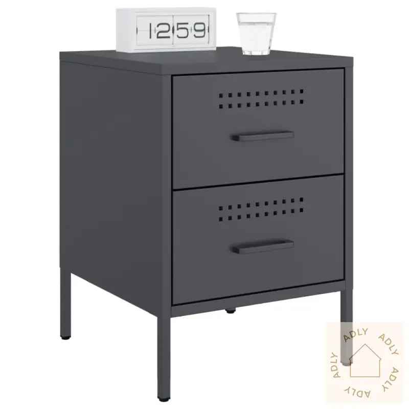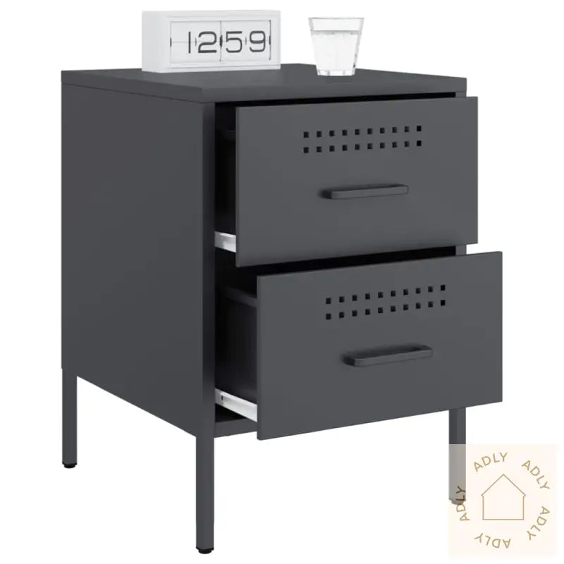Robust og stabil ramme: Stålrammen gir nattbordet styrke og pålitelighet, samtidig som det tåler daglig bruk i mange år. Perfekt for deg som ønsker solide møbler til hjemmet uten mye vedlikehold.Rikelig med oppbevaringsplass: De to praktiske skuffene lar deg enkelt organisere alt fra bøker til elektronikk, ladere eller personlige ting, slik at nattbordet hjelper deg å holde soverommet ryddig og oversiktlig.Enkel å rengjøre: Overflaten er fuktbestandig, så små uhell kan tørkes bort med en fuktig klut på noen sekunder. Dette gjør det til et smart valg for både barnerom, soverom eller arbeidsrom.Multifunksjonelt design: Nattbordet passer ikke bare ved siden av sengen, men fungerer også flott som sidebord ved sofaen, eller til ekstra oppbevaring på hjemmekontoret. Det er like anvendelig i alle rom hvor du trenger praktisk lagringsplass kombinert med klassisk design.Visningsmuligheter: Den solide toppen gir deg god plass til å vise frem favorittbilder, planter eller dekorasjoner, noe som gir rommet ditt et personlig preg og gjør innredningen komplett.Advarsel:
