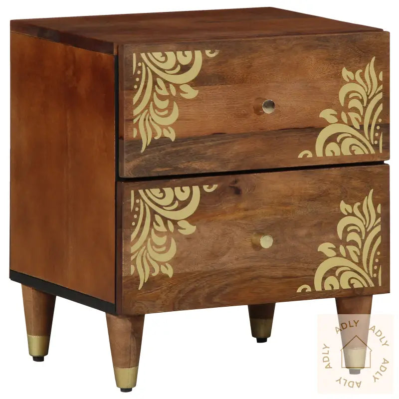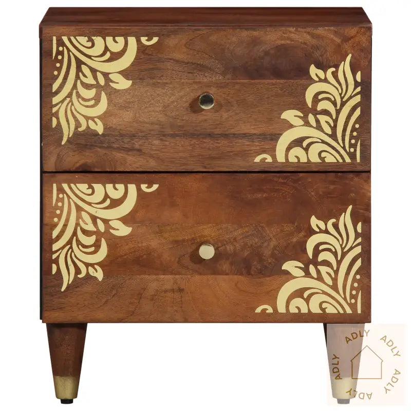 Dette nattbordet kombinerer tidløs eleganse med praktisk funksjon, perfekt for deg som vil løfte interiøret i soverommet. Laget av massivt mangotre og med en moderne matt finish, gir det en varm honningbrun farge og et sjarmerende blomstermotiv, noe som tilfører både karakter og stil til rommet ditt. Dette er et møbel du vil ha glede av lenge – det solide håndverket gir ikke bare slitestyrke, men også et eksklusivt preg som skiller seg ut blant andre møbler til hjemmet.
