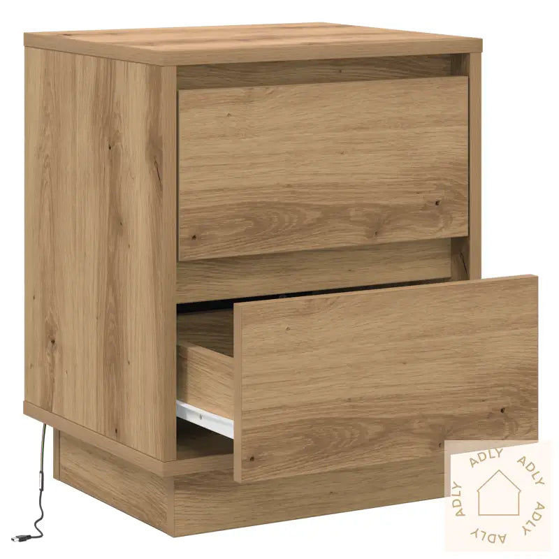 Dette nattbordet forener moderne stil med praktisk funksjonalitet, og blir raskt en favoritt blant møbler til hjemmet. Den unike kunstneriske eik-finishen gir ikke bare et estetisk løft, men skaper også en solid og elegant plattform for alt du trenger lett tilgjengelig ved sengen. Med dette nattbordet får du både et ryddig soverom og et moderne tilskudd som virkelig fremhever rommets helhet.