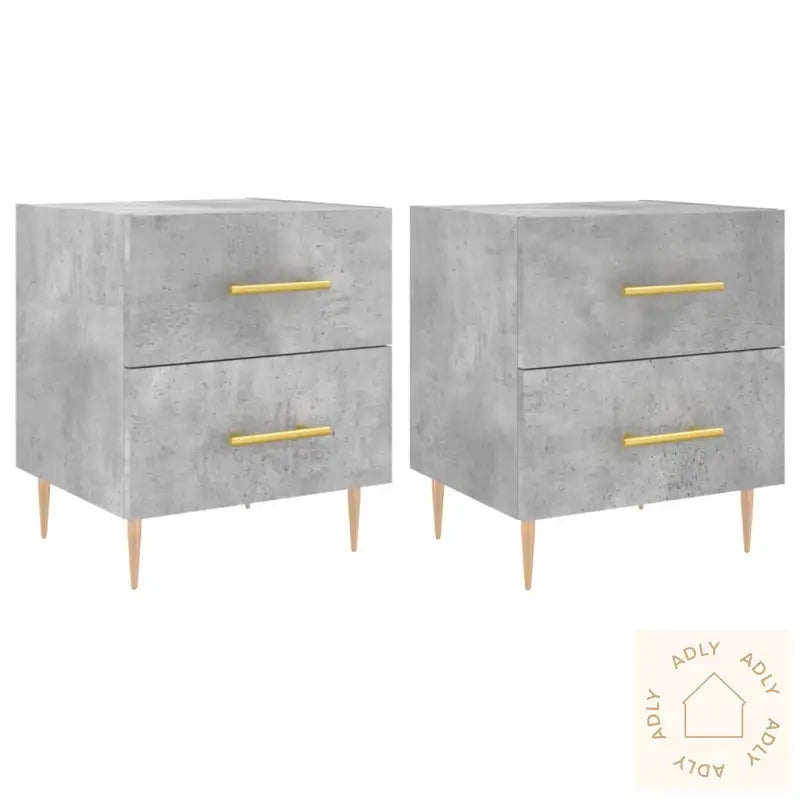 Slitesterkt materiale: Det konstruerte treverket er av høy kvalitet, med en glatt og elegant overflate. Dette gir deg møbler som både er sterke, stabile og motstandsdyktige mot fuktighet – en praktisk fordel enten du kjøper møbler til hjemmet eller vil ha holdbare hagemøbler til innebruk.Romslig oppbevaring: Nattbordet har praktiske skuffer som gir god plass til bøker, fjernkontroller, småting og alt annet du vil ha lett tilgjengelig når du slapper av. Perfekt for å holde soverommet ryddig og organisert!Visningsfunksjon: Topplaten på sidebordet gir en utmerket plass til å sette frem favorittbildene dine, blomster eller dekorative detaljer som tilfører et personlig preg til rommet og gir mer liv til dine møbler.Metallføtter: Stilige metallføtter gir bordet en trendy look og sørger samtidig for solid stabilitet, slik at nattbordene holder seg på plass uansett hvor de står.Farge: betonggrå – en moderne og allsidig farge som passer inn i de fleste interiørstiler og fremhever andre møbler til hjemmet.Materialer: konstruert tre og jern – kvalitetsmaterialer som varer og ser flotte ut lenge.Mål: 40 x 35 x 47,5 cm (B x D x H)Montering kreves: ja – enkel montering med medfølgende instruksjoner.Leveransen inneholder:2 x nattbord – ideelt om du vil matche oppbevaringen på begge sider av sengen.