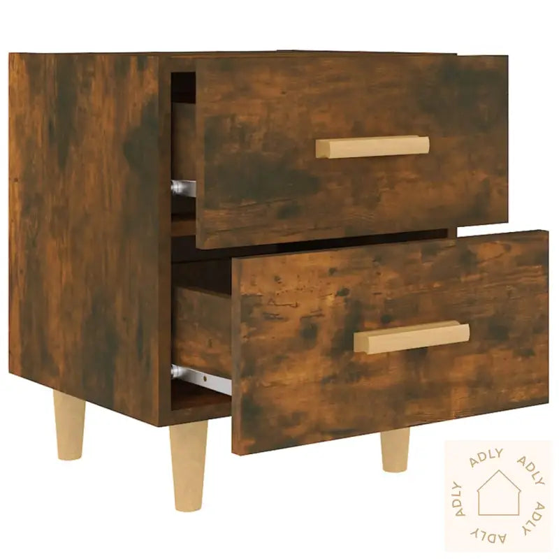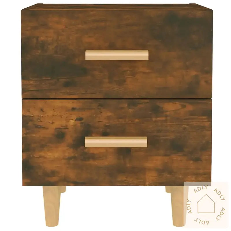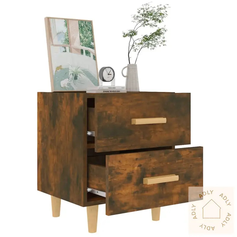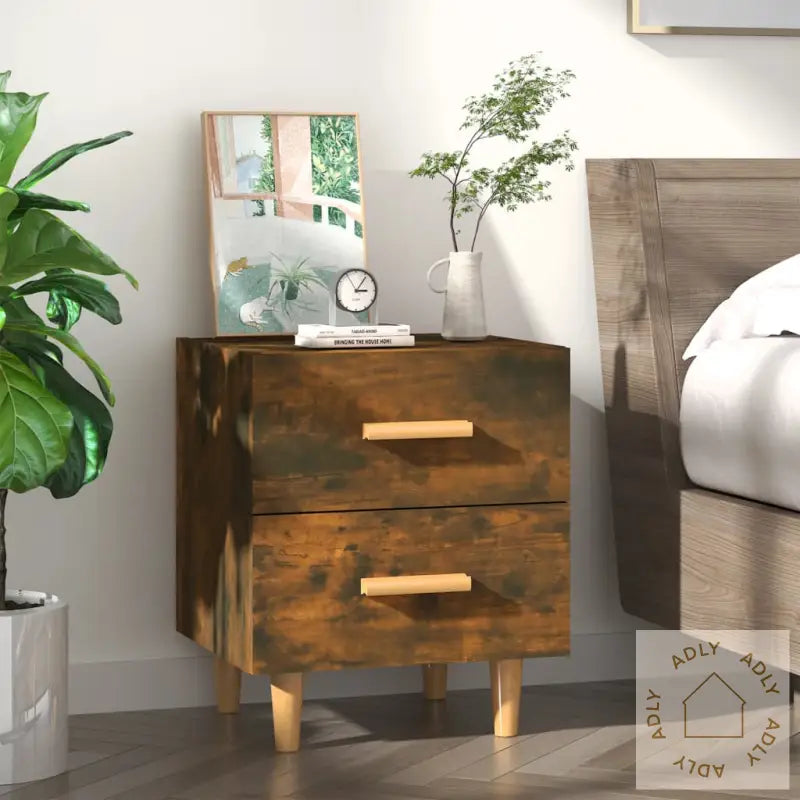 Multifunksjonelt skap: Den robuste topplaten gir deg plass til å vise frem tingene dine – enten det er dekorative gjenstander, fotorammer eller grønne potteplanter. Dette nattbordet kan like gjerne brukes som et praktisk sideskap, endebord eller et stilig supplement sammen med andre møbler til hjemmet ditt.Farge: Røkt eikMaterialer: Konstruert tre og heltre eukalyptusMål: 40 x 35 x 47,5 cm (B x D x H)Inkluderer 2 skuffer med håndtak i treLeveres med 4 robuste treben av heltre eukalyptusMontering kreves