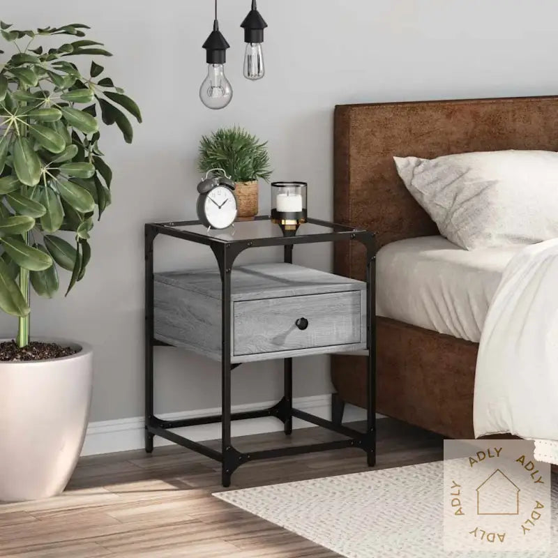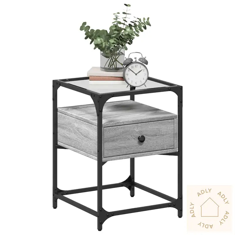 Slitesterkt materiale: Laget av konstruert tre av høy kvalitet, har nattbordene en jevn og elegant overflate som tåler daglig bruk. Materialet er kjent for sin styrke, stabilitet og gode motstand mot fuktighet – perfekt for både møbler og utendørsmøbler dersom du ønsker helhet i hjemmet.Robust og stabil ramme: Det konstruerte treverket sammen med solide stålkomponenter sørger for at rammen holder seg stødig og slitesterk, slik at du får varige møbler som tåler å bli brukt hver dag.Glasstopp: Sidebordets topp i herdet glass gir et eksklusivt preg, samtidig som du får en praktisk og lettvint flate for å sette snacks, drikkevarer, vaser, fruktskåler eller dekorative elementer. Perfekt for deg som liker å holde ting organisert og samtidig ha plass til pynt.Rikelig med oppbevaringsplass: Den innebygde hyllen gjør det enkelt å oppbevare bøker, blader, ladere eller andre ting du trenger tilgjengelig ved sengen eller sofaen. Dette gir deg en smart løsning for å holde orden i hjemmet.Enkel å rengjøre: Takket være den fuktbestandige overflaten er nattbordet enkelt å tørke av med en fuktig klut, så det ser nytt ut dag etter dag – lettvint for travle hverdager.Advarsel: