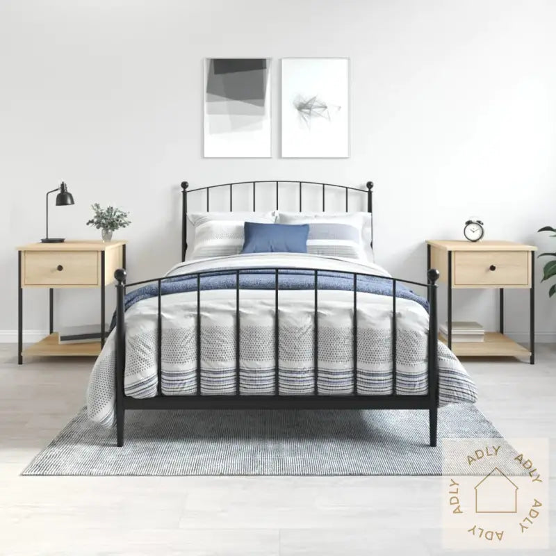 Slitesterkt materiale: Laget av konstruert tre, er disse nattbordene både solide og langvarige. Den glatte overflaten gjør dem enkle å rengjøre og vedlikeholde, samtidig som materialet har god styrke, stabilitet og motstand mot fuktighet – perfekt for daglig bruk.Robust ramme: Den solide stålrammen gir ekstra støtte og sørger for at møblene står stødig og tåler daglig slitasje over tid.Rikelig med lagringsplass: Med sine smarte løsninger gir sidebodet deg god plass til å organisere bøker, ladere eller andre nødvendigheter du ønsker lett tilgjengelig ved sengen eller sofaen. Det gjør dem superpraktiske som møbler til hjemmet der du ønsker enkel tilgang og orden.Visningsfunksjon: Den romslige toppen gir masse plass til å vise frem favorittbilder, dekorasjoner eller blomster, så du enkelt kan sette ditt personlige preg på rommet. Her kan du skape din egen lille utstillingsplass.Justerbare føtter: Fire justerbare føtter med slitesterke plastputer lar deg balansere nattbordet selv på ujevne gulv. Dette bidrar til økt stabilitet, beskytter gulvet og gjør det enkelt å tilpasse møblene dersom underlaget ikke er helt rett.Advarsel: