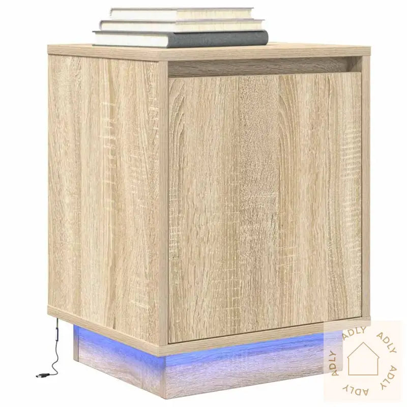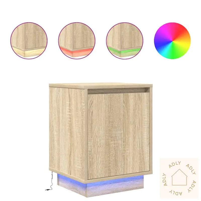 Oppgrader soverommet ditt med dette moderne nattbordsskapet med innebygde LED-lys! Designet passer sømløst inn sammen med alle typer møbler til hjemmet, og gir et stilrent uttrykk i sonoma eik som glir rett inn i interiøret ditt.