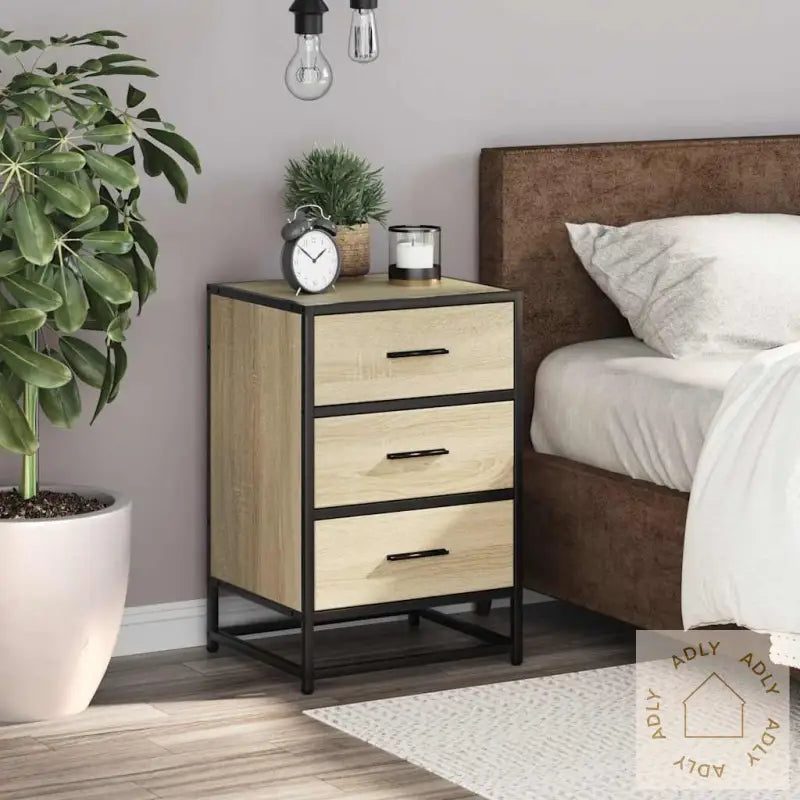Dette nattbordet i sonoma eik har et elegant og moderne design, noe som gjør det til et tidløst og praktisk tillegg til møbler til hjemmet ditt.