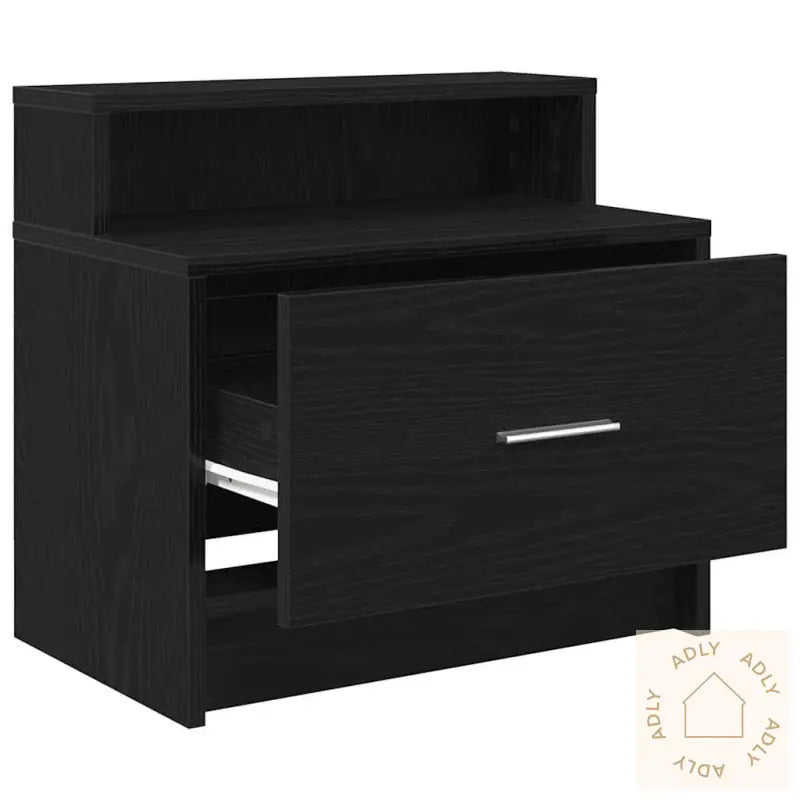 Stabilt og slitesterkt materiale: Laget av konstruert tre, som er kjent for å være motstandsdyktig mot fukt, vridning og oppsprekking. Denne solide kvaliteten sikrer at du får et nattbord du kan ha glede av lenge, enten det er på soverommet eller kanskje som en ekstra oppbevaringsløsning i gangen.Rikelig med oppbevaringsplass: Med en romslig skuff og et åpent oppbevaringsrom har du god plass til bøker, magasiner, briller eller andre små gjenstander du vil ha innen rekkevidde. Det hjelper deg å holde soverommet organisert og ryddig.Praktisk bruk: Nattbordet har perfekt høyde for lett tilgang fra sengen, og det smarte håndtaket på skuffen gjør det enkelt å åpne og lukke – uansett om du er trøtt eller har hendene fulle.Lett å vedlikeholde: Takket være den glatte overflaten er det lekende lett å tørke av støv eller søl med en fuktig klut, så du bruker minimalt med tid på vedlikehold.Nattbordet i svart eik passer perfekt sammen med både utendørsmøbler og annen innredning, så det sklir rett inn med resten av møbler til hjemmet ditt og gir helhetlig stil.