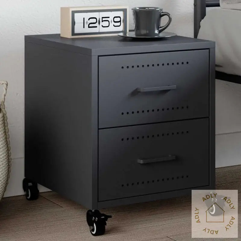 Stabilt materiale: Rammen på nattbordet er lagd av kaldvalset stål, et slitesterkt lavkarbonstål som produseres gjennom en "kaldvalsing"-prosess ved romtemperatur. Dette gjør overflaten ekstra jevn, styrker strukturen, og sørger for at møbelet varer lenge – perfekt for daglig bruk i hjemmet eller som del av solide hagemøbler hvis du vil bruke det i uterom.Rikelig lagringsplass: Skapet har to skuffer som gir god plass til alt fra magasiner til fjernkontroller, bøker eller småting du raskt vil ha tilgjengelig ved sengen. Alt holder seg organisert og ligger lett tilgjengelig.Enkelt vedlikehold: Materialene krever minimalt med vedlikehold. Bordet er superlett å tørke av med en fuktig klut så du slipper å bruke mye tid på rengjøring.Lett å flytte: Med fire hjul kan du enkelt flytte nattbordet rundt etter behov – enten du skal vaske under det eller bare vil ommøblere. Hjulene står også stødig når bordet skal stå i ro.Praktisk håndtak: Et stilig og solid håndtak gjør det enkelt å åpne og lukke skuffene, samtidig som det gir ekstra karakter til nattbordets design.Farge: antrasittMateriale: kaldvalset stålMål: 36 x 39 x 43,5 cm (L x B x H)Med 2 skufferMontering kreves: ja