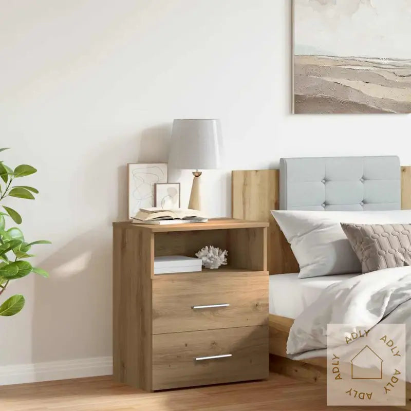 Dette nattbordet i tre kombinerer et stilig og moderne design med en tidløs følelse, noe som gjør det til et allsidig tilskudd til interiøret. Med sin vakre artisan eik-finish gir dette møbelet et varmt preg som passer perfekt sammen med både andre møbler til hjemmet og populære hagemøbler.