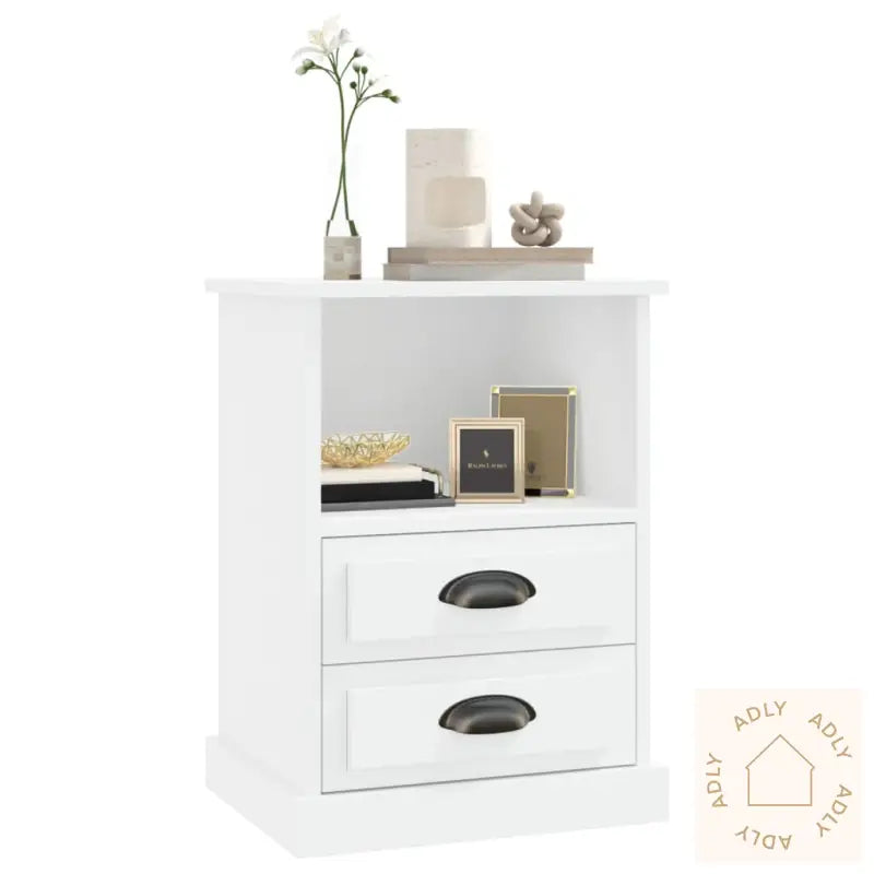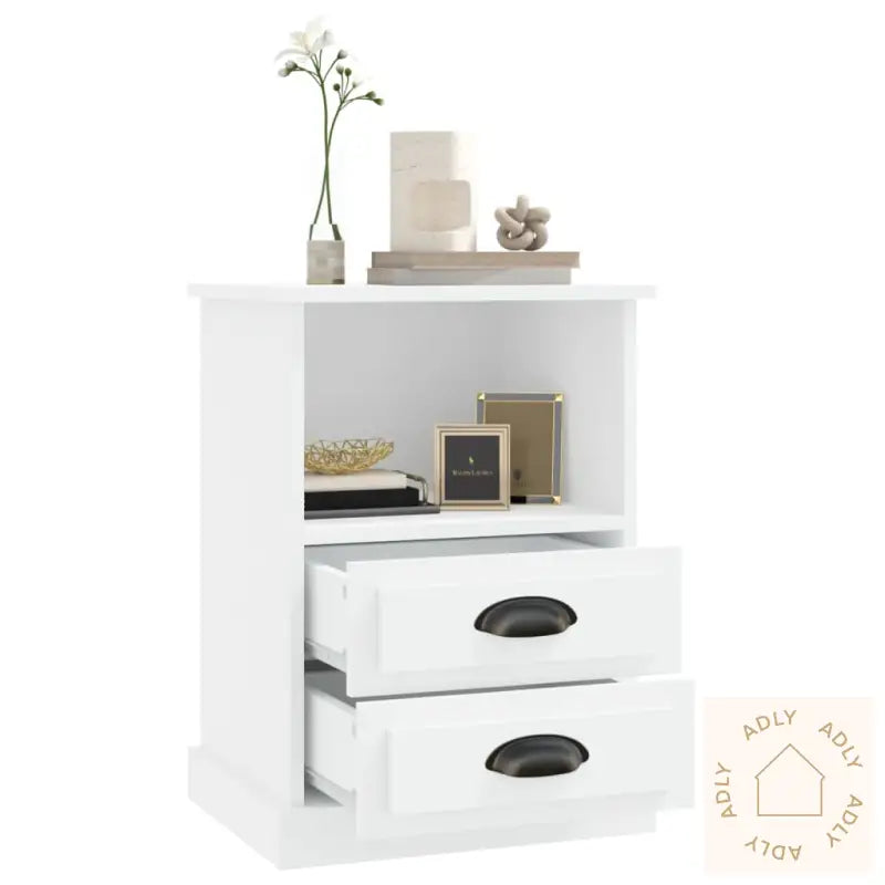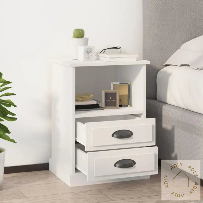 Slitesterkt materiale: Nattbordene er laget av høykvalitets konstruert treverk. Overflaten er glatt og lett å rengjøre, mens materialet gir både styrke, stabilitet og god motstand mot fukt. Dette sikrer at du får varige møbler som tåler daglig bruk, enten soverommet ditt trenger noe robust eller du vil style rommet ditt på en praktisk måte.Romslig oppbevaring: Med 2 skuffer og 1 åpnet rom får du god plass til å oppbevare alt fra bøker og briller til elektronikk og småting – alltid organisert og lett tilgjengelig, slik at du slipper unødvendig rot på soverommet.Stabil og allsidig bordplate: Topplaten fungerer flott til å vise frem favorittdekor, bilder eller grønne planter. Det bidrar til å gjøre rommet mer personlig samtidig som det gir ekstra plass til ting du ønsker å ha i nærheten av senga.Advarsel: