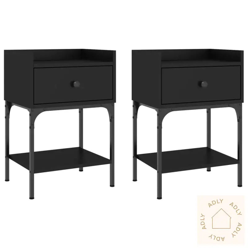 For å forhindre at nattbordene velter, må de alltid festes med den medfølgende sikrehetsanordningen.Farge: svartMaterialer: konstruert tre, jernMål: 40,5 x 31 x 60 cm (B x D x H)Montering kreves: jaLeveransen inneholder:2 x nattbordLegal Documents:
