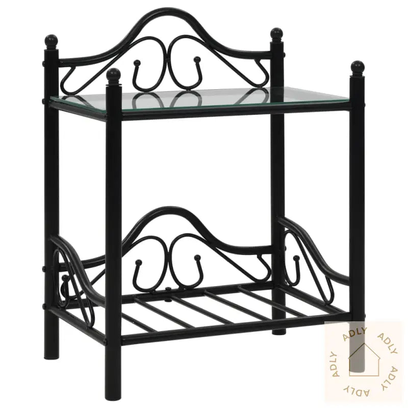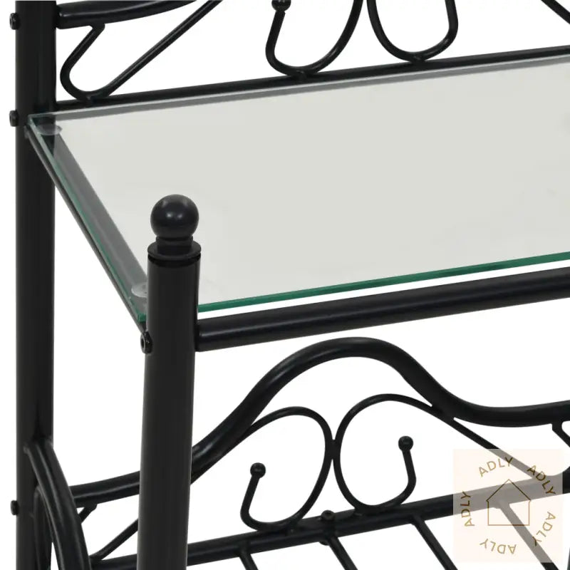 Farge: svartMaterialer: stål og herdet glassMål: 45 x 30,5 x 60 cm (B x D x H)Tykkelse herdet glass: 5 cmMed 2 hyller