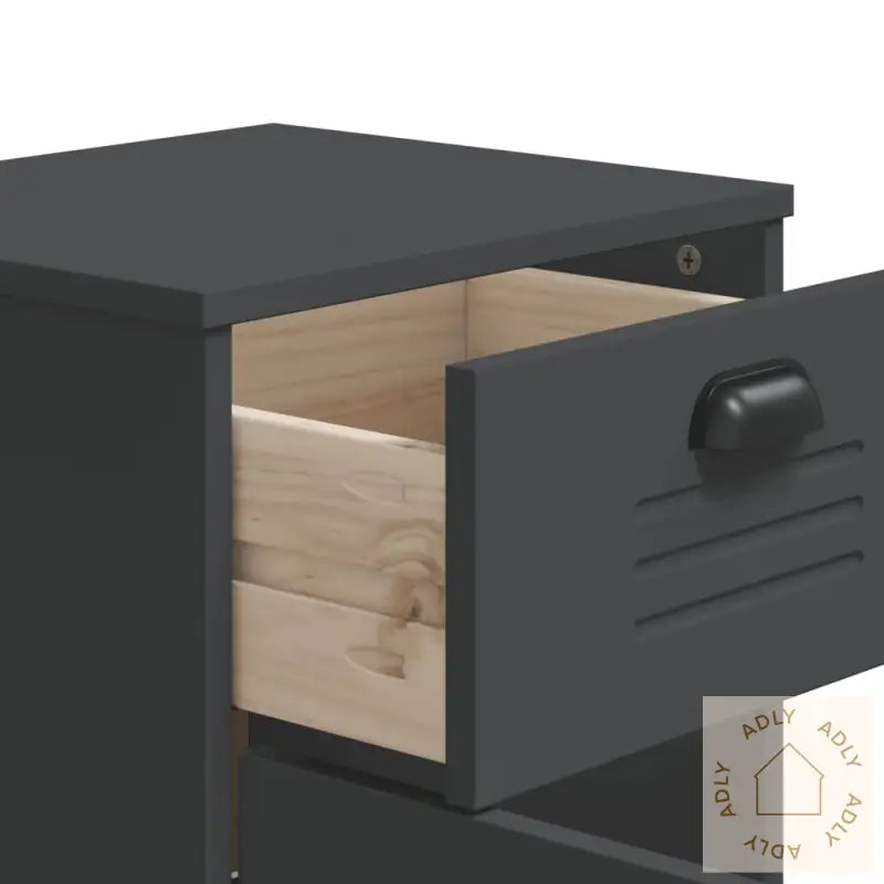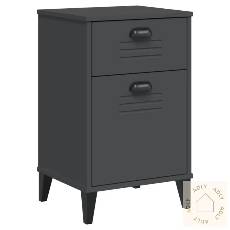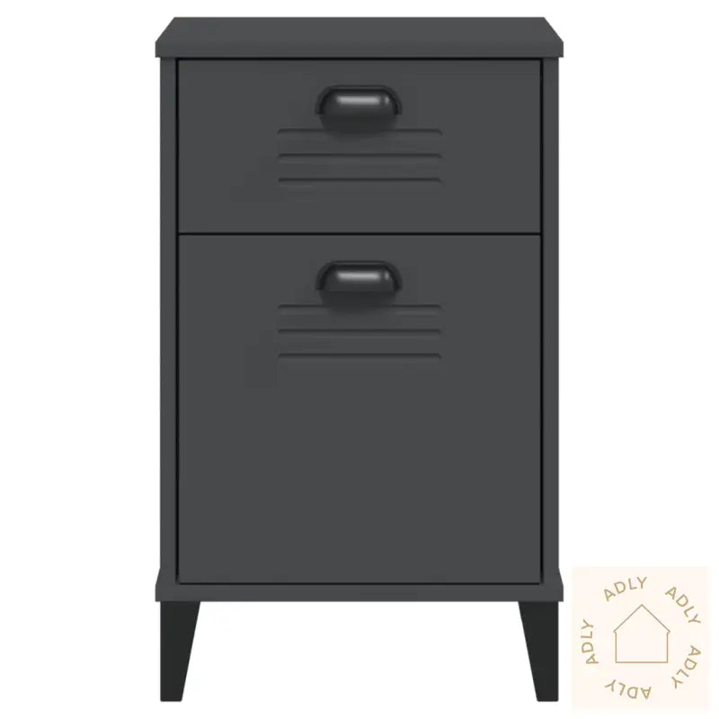 For å unngå at møblene velter, må produktet festes sikkert med den medfølgende festeanordningen.Farge: Antrasittgrå for et moderne uttrykkMaterialer: Konstruert tre og plast – solide materialvalg for robuste møblerMål: 40 x 35 x 65 cm (B x D x H) – en størrelse som passer i de fleste romYtre mål skuff: 35,5 x 17 cm (B x H)Mål dør: 35,5 x 34 cm (B x H)Utstyrt med 1 skuff og 1 rom med dørLeveres med 2 plasthåndtakKolleksjon: VIKEN – en serie med allsidige møbler til hjemmetKrever enkel monteringLegal Documents: