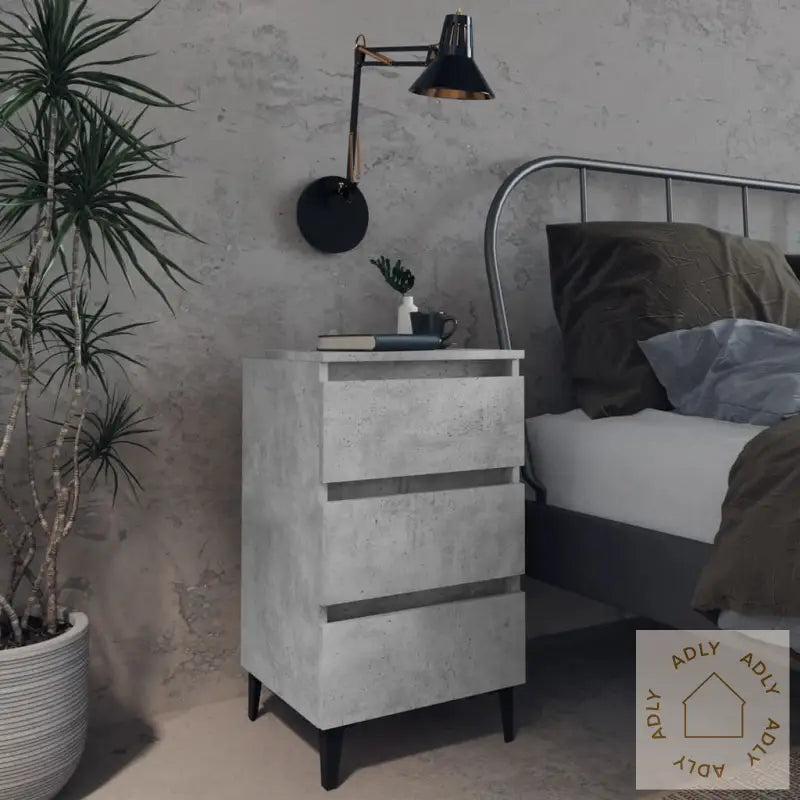 Praktisk i bruk, dette nattbordet er enkelt å holde rent med en fuktig klut. Det betonggrå designet gir en moderne, urban look og lar seg fint matche med andre møbler og interiørstiler.