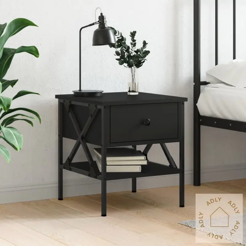 Slitesterkt materiale: Konstruert tre av høy kvalitet gir en glatt finish og gjør at nattbordet tåler daglig bruk over lang tid. Materialet er motstandsdyktig mot fuktighet og forskyvning, noe som bidrar til at det holder seg pent i mange år. Perfekt enten du bruker det som nattbord, sidebord eller praktisk oppbevaring ved sofaen.Stabil ramme: Den solide jernrammen gir ekstra støtte og sørger for at nattbordet står støtt og sikkert, selv når det fylles opp med hagemøbler, interiørartikler eller bøker.Rikelig med lagringsplass: Skap enkelt orden på soverommet eller stua takket være god plass til alt fra mobil og lesebrett til magasiner, fjernkontroller eller andre nødvendigheter innen rekkevidde.Justerbare føtter: Nattbordet er utstyrt med fire justerbare føtter. Disse gjør at du alltid får stabilitet, selv på ujevne gulv, og samtidig beskytter de gulvet mot riper – ideelt for alle typer underlag. Med justerbare føtter slipper du vingling og skader på gulvet.Visningsfunksjon: Toppen gir god plass til å vise frem favorittbilder, dekorasjoner, planter eller blomster. Perfekt for å sette din personlige stil på rommet og gjøre interiøret enda mer innbydende.Farge: svartMaterialer: konstruert tre, jernMål: 40 x 42 x 45 cm (L x B x H)Montering kreves: ja