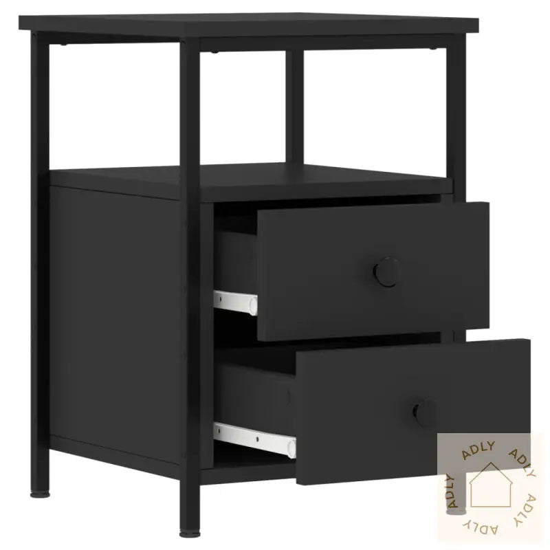 Disse nattbordene har en moderne, industriell stil som gir et tidløst preg til innredningen din. Perfekt som praktiske møbler til hjemmet, passer de like godt på soverommet ditt som en smart og plassbesparende løsning.