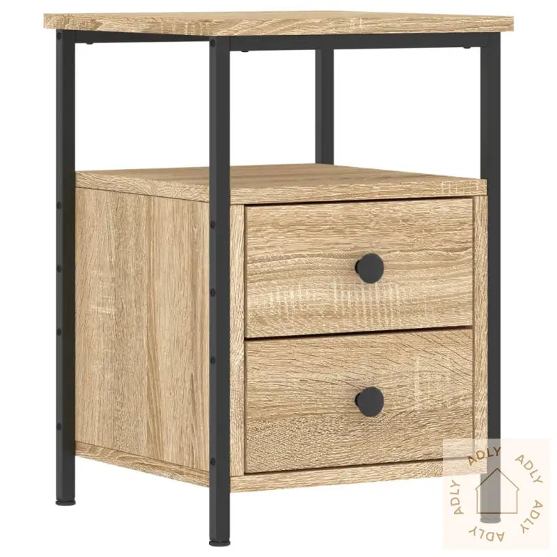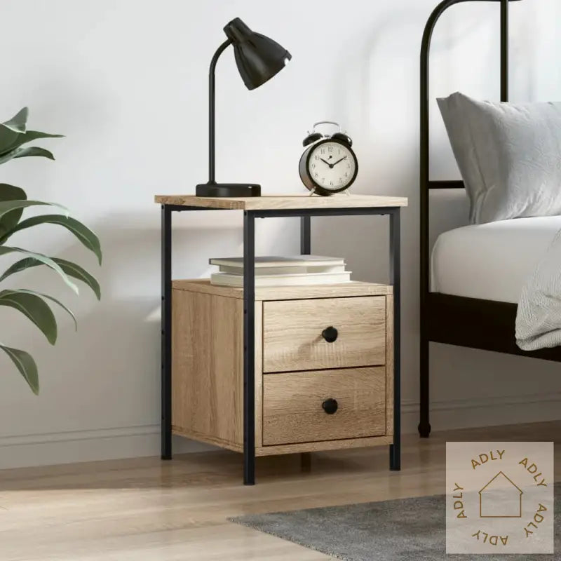 Dette stilrene nattbordet med industrielt preg er et tidløst tillegg til hjemmet, og passer perfekt inn med ulike typer møbler til hjemmet. Sidebordet er laget i sonoma eik-look, som gir et naturlig og moderne uttrykk.