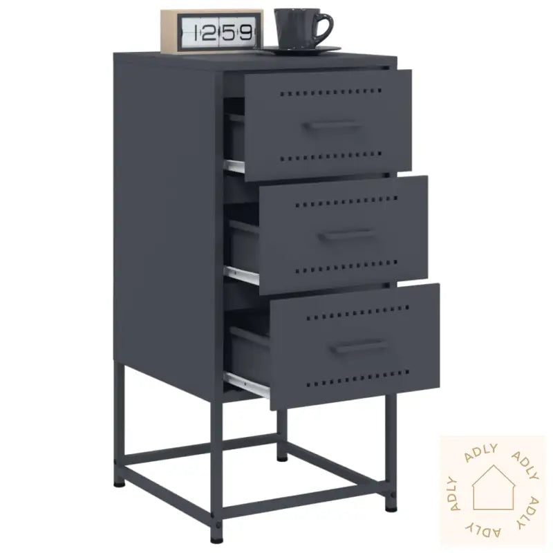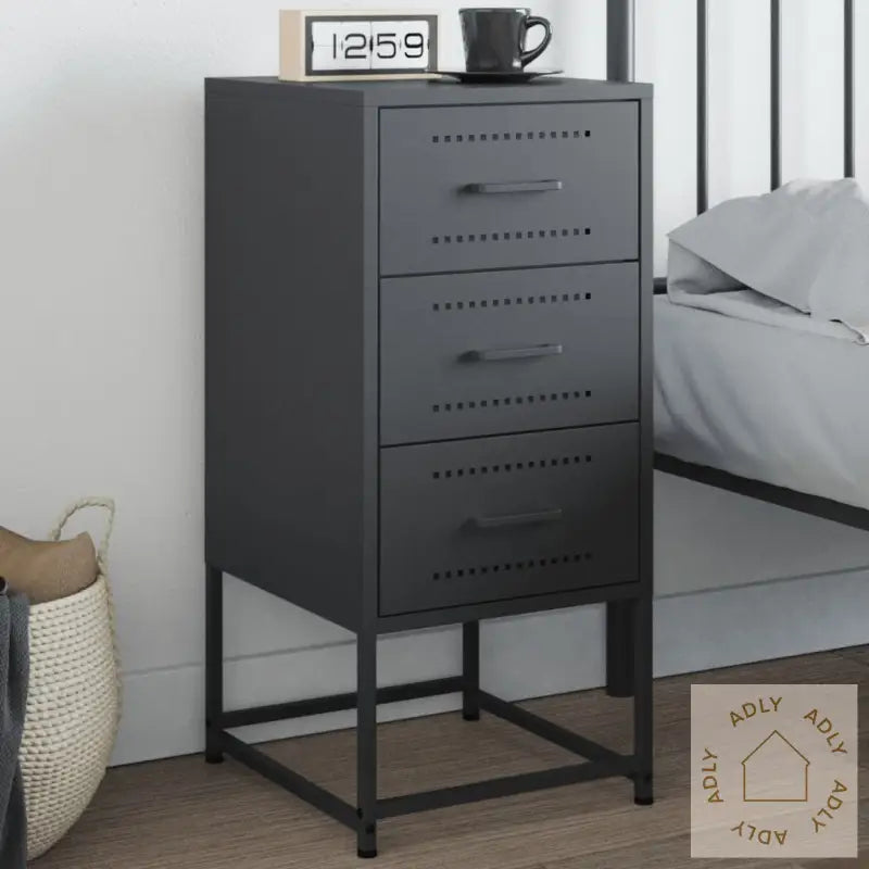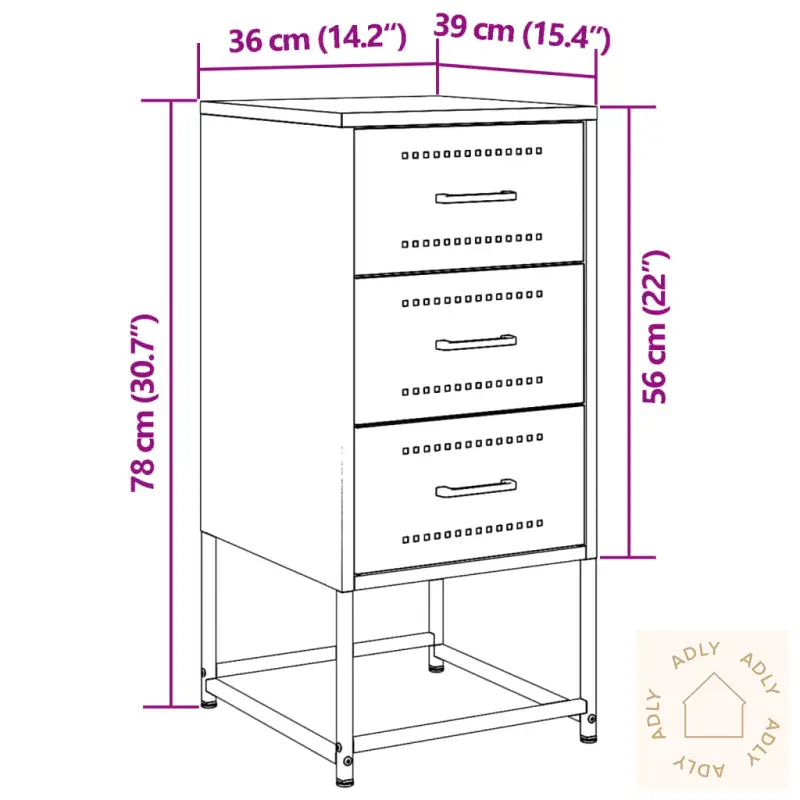 Robust og stabil ramme: Den solide stålrammen gir nattbordet ekstra styrke og lang holdbarhet. Dette gjør det ideelt for daglig bruk, enten du trenger oppbevaring nær sengen eller ønsker å bruke det som et sidebord.Rikelig med oppbevaringsplass: Med god lagringsplass hjelper dette nattbordet deg å holde forskjellige ting organisert og lett tilgjengelig. Perfekt for å ha det viktigste nært – enten det er bøker, klokker eller annet tilbehør.Enkel å rengjøre: Det slitesterke stålet tåler både fukt og støv, og du kan enkelt tørke overflatene rene med en fuktig klut. Dette gir en praktisk løsning for deg som vil ha møbler som krever lite vedlikehold.Multifunksjonelt design: Nattbordet er ikke bare et møbel til soverommet, men fungerer også supert som sidebord ved sofaen, eller som et ekstra skap i kontoret. Skapet kan utfylle både klassiske og moderne interiør, og er perfekt både alene og sammen med andre møbler.Visningsfunksjon: Toppen av nattbordet gir en fin plass til å vise fram favorittbilder, dekorasjoner eller planter, som virkelig gir rommet ditt et personlig preg og skaper en hyggelig atmosfære. Kombiner gjerne med andre stilrene møbler for et gjennomført uttrykk.Advarsel: