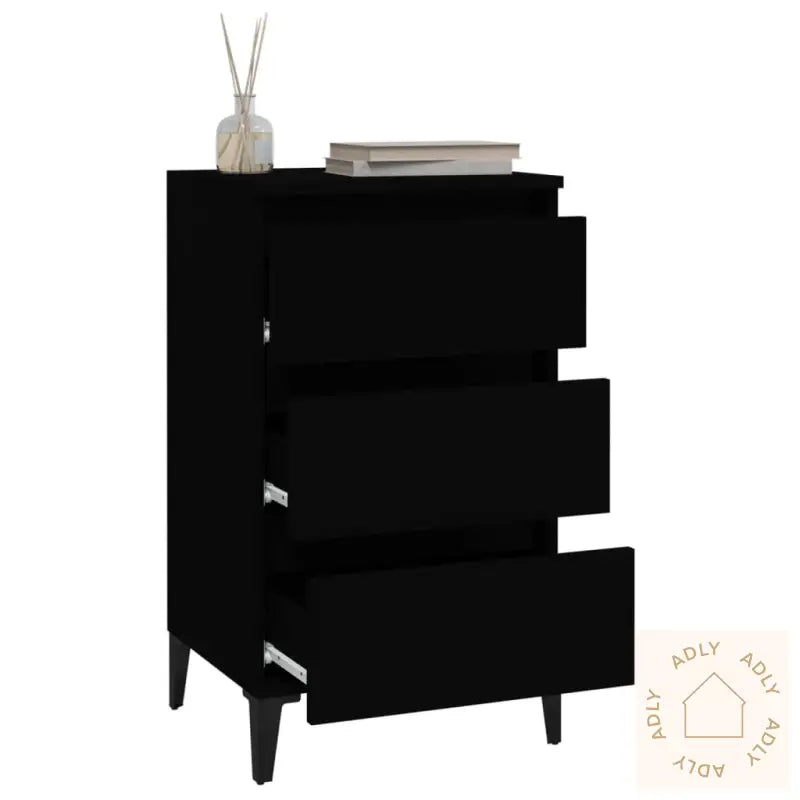 Slitesterkt materiale: Den solide konstruksjonen i konstruert tre gir eksepsjonell kvalitet, styrke og stabilitet til bordet. Overflaten er glatt og motstandsdyktig mot fuktighet, noe som gjør møbelet enkelt å vedlikeholde og holde pent over tid.Metallføtter: De solide metallføttene gir sidebordet god støtte og varig holdbarhet. Dette gir både et stilig, urbant uttrykk og sørger for at møbelet står stødig i daglig bruk.Rikelig med oppbevaringsplass: Med en stor og praktisk bordplate får du plass til alt du vil ha lett tilgjengelig – enten det er bøker, TV-utstyr, vannglass eller kaffekoppen din. I tillegg gir de tre romslige skuffene flotte muligheter til å organisere småting og hverdagsnødvendigheter.Multifunksjonelt design: Dette skapet i industriell stil glir rett inn i ulike rom og settinger – det fungerer utmerket som både nattbord, sidebord til sofaen eller som en smart oppbevaringsløsning på kontoret eller arbeidsrommet. Industriell stil passer fint sammen med mye annet, fra bokhyller og stående hyller til moderne hagemøbler om du ønsker en helhetlig look.ADVARSEL: