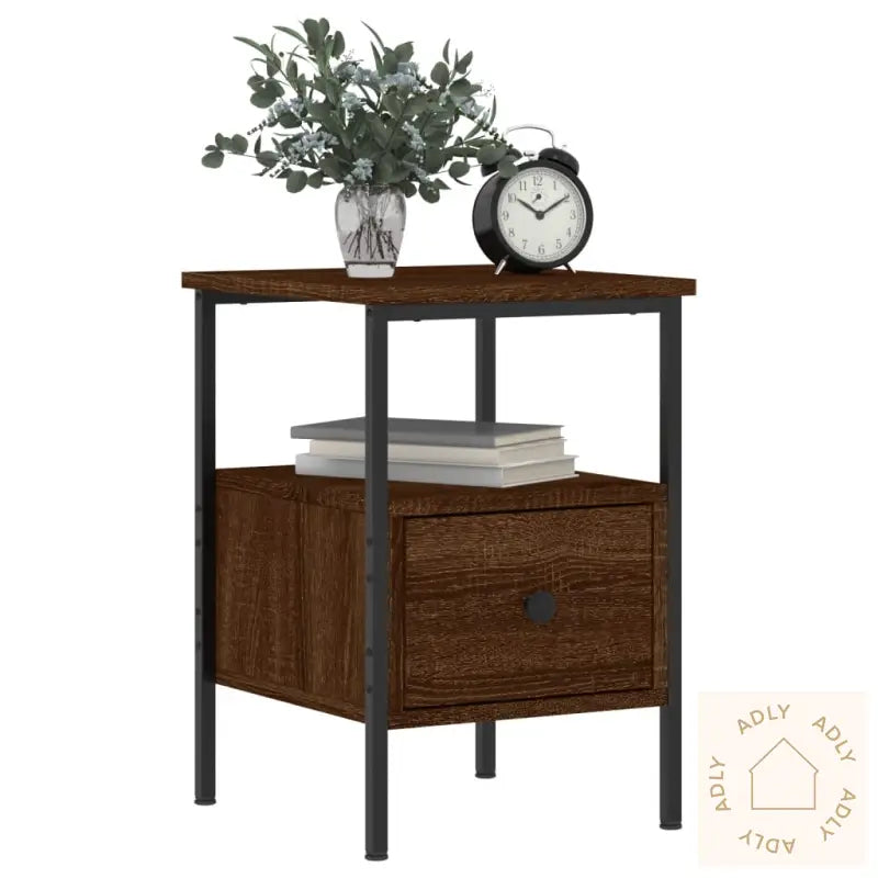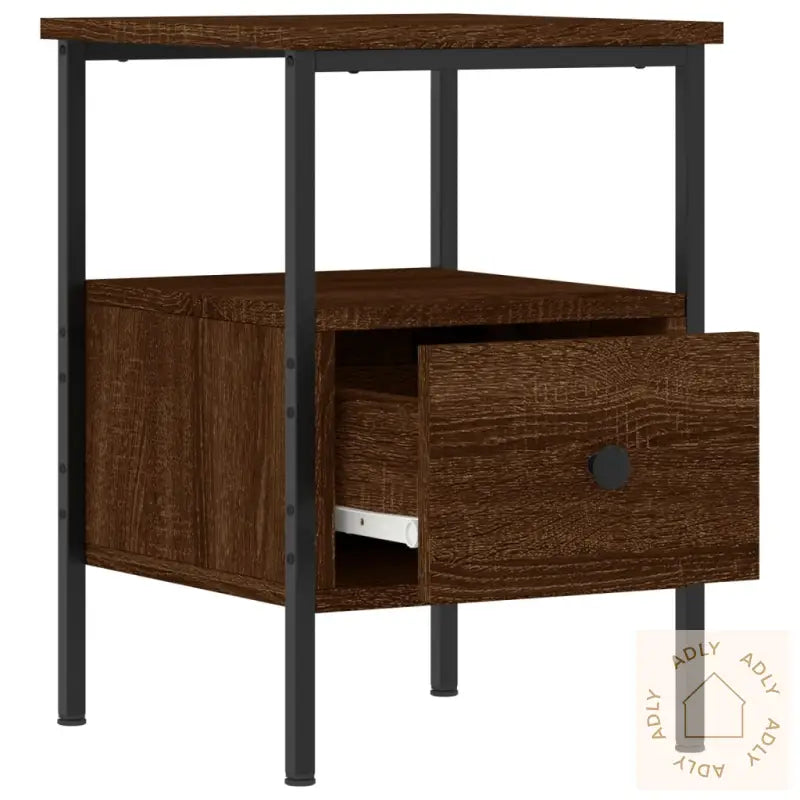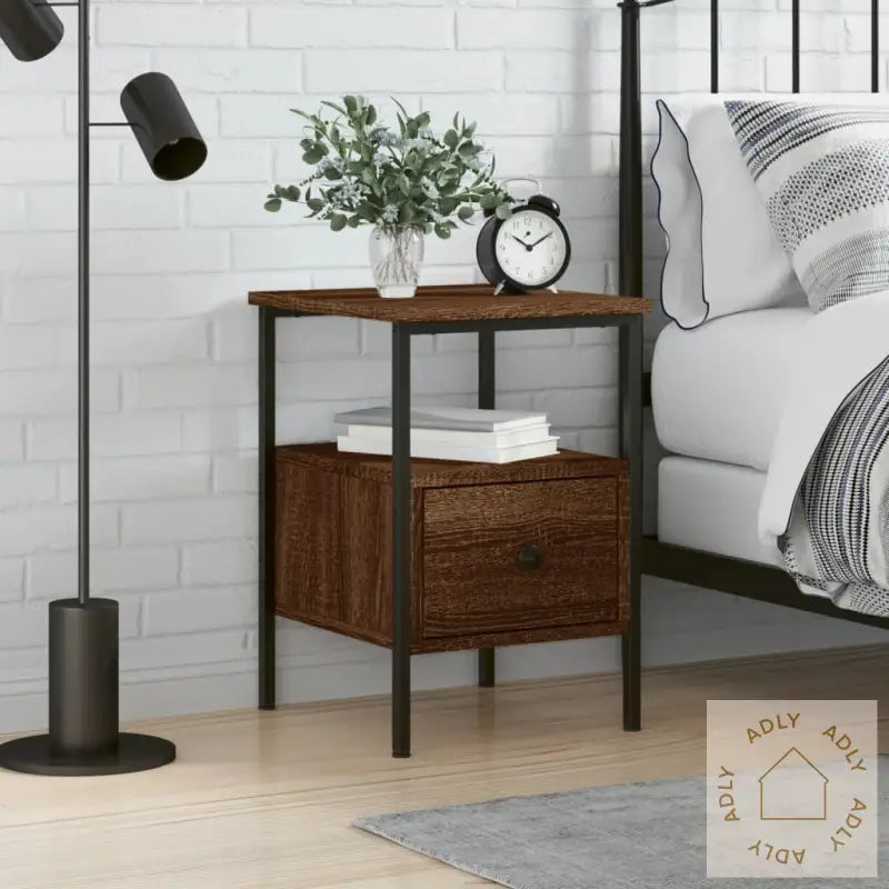 Slitesterkt materiale: Laget av konstruert tre av høy kvalitet, dette nattbordet har en jevn og lettstelt overflate. Det konstruerte treverket gir styrke, stabilitet og utmerket motstand mot fukt, som er viktig for holdbarheten på hagemøbler og møbler til hjemmet generelt.Stabil ramme: Jernrammen gir ekstra soliditet og pålitelighet, så nattbordet står støtt over tid, selv ved daglig bruk.Rikelig med lagringsplass: Du får god plass til oppbevaring av småting, bøker, ladere eller andre nødvendigheter. Alle hverdagslige gjenstander holdes organisert og lett tilgjengelige, noe som bidrar til et ryddig hjem.Visningsfunksjon: Bordplaten er ideell for å vise frem favorittbilder, dekorelementer eller blomster, slik at du enkelt kan tilpasse og livne opp rommet ditt.Justerbare føtter: Fire justerbare føtter med plastputer gjør nattbordet enkelt å balansere, selv om gulvet er litt ujevnt. Dette øker stabiliteten og beskytter gulvet mot riper, og er særlig praktisk hvis du ofte ommøblerer eller flytter møbler til hjemmet.Advarsel: