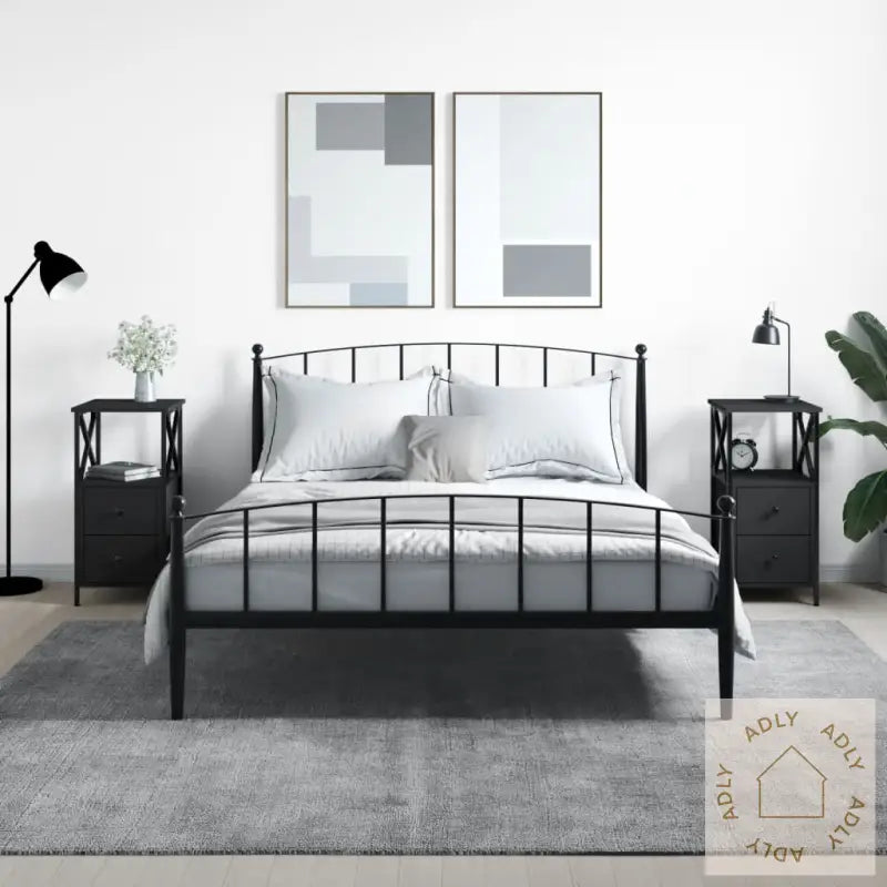 Slitesterkt materiale: Det konstruerte treverket utmerker seg med en jevn og elegant overflate, samtidig som det gir god styrke, stabilitet og motstår fuktighet over tid. Dette betyr at nattbordene holder seg pene lenger, selv ved daglig bruk.Stabil ramme: Den solide jernrammen varer i mange år og sørger for at nattbordet står støtt, uansett hva du plasserer på det. Perfekt for deg som ønsker møbler med lang levetid.Rikelig med lagringsplass: Med godt med oppbevaringsmuligheter får du enkelt plass til alt fra bøker og elektronikk til småting du trenger nært sengen. Du slipper rot og har det du trenger innen rekkevidde.Visningsfunksjon: Toppen av sidebordet gir ekstra mulighet for å vise frem dine favorittdekorasjoner, grønne planter eller bilder, noe som gir rommet ditt en ekstra personlig touch.Justerbare føtter: Fire justerbare føtter utstyrt med plastputer holder skapet balansert, selv om gulvet er litt skjevt. Dette gir både bedre stabilitet og beskyttelse for gulvet ditt. Justerbare føtter gjør også nattbordene enklere å plassere sammen med andre møbler til hjemmet eller sammen med hagemøbler inne.Advarsel: