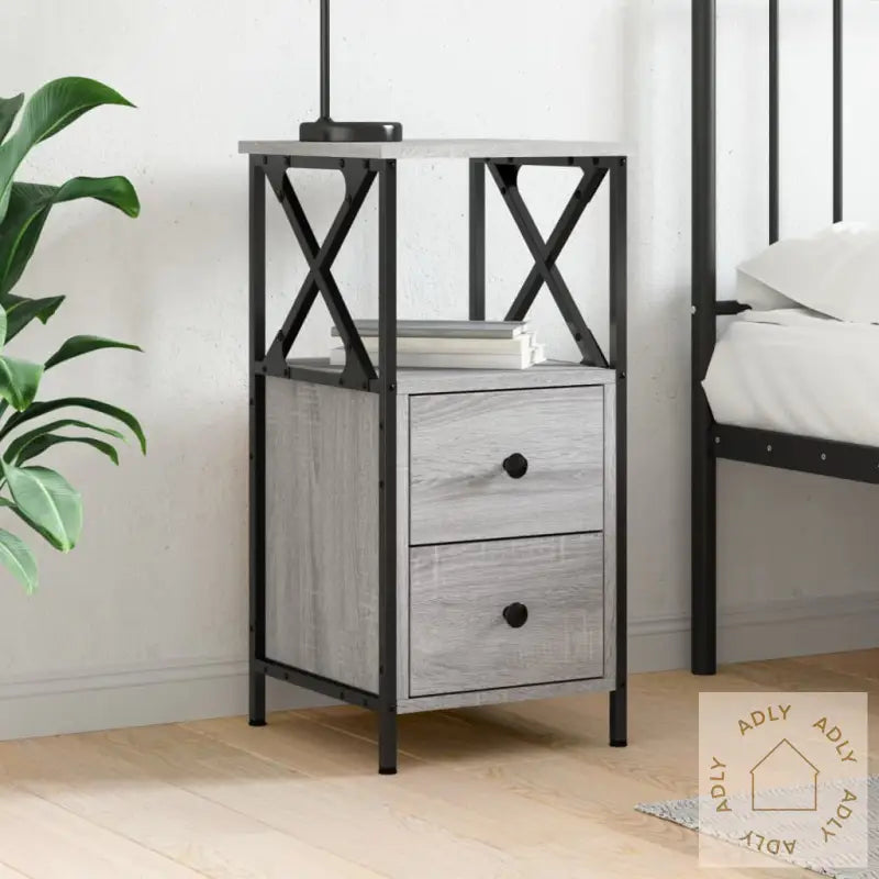 For å forhindre at nattbordet velter må det sikres med den medfølgende festeanordningen.Farge: grå sonomaMaterialer: konstruert tre, jernMål: 34 x 35,5 x 70 cm (B x D x H)Montering kreves: jaLegal Documents: