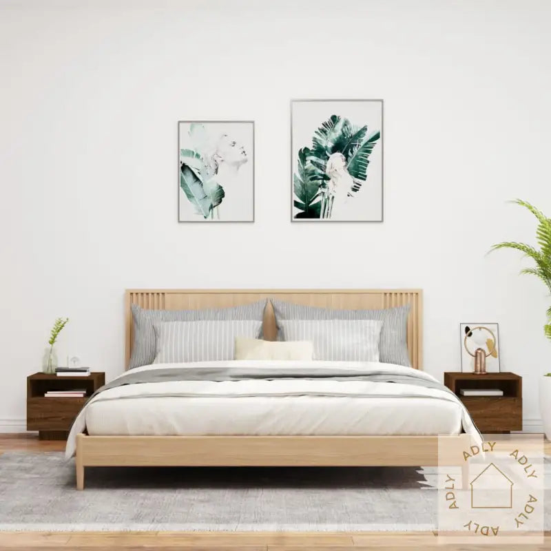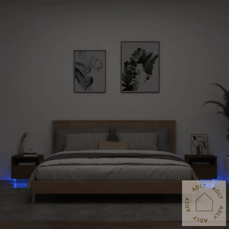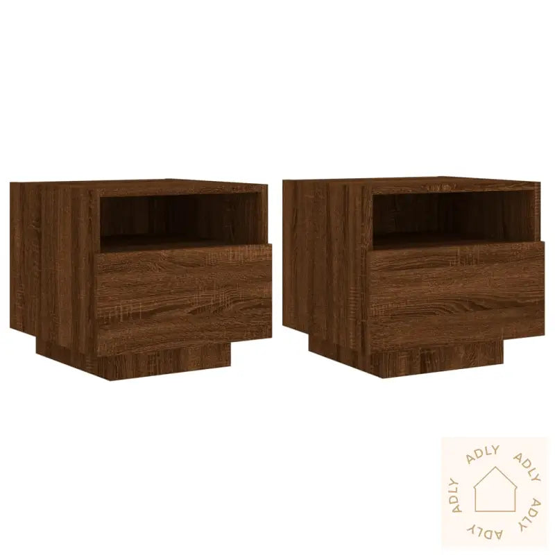 Nattbordene med RGB LED-lys bringer inn både et moderne design og praktiske løsninger som virkelig kan løfte soverommet ditt. Disse trendy nattbordene i brun eik passer perfekt inn blant møbler til hjemmet, og blir raskt et naturlig blikkfang.