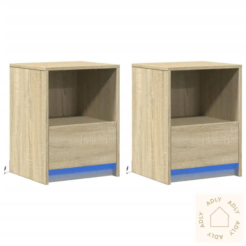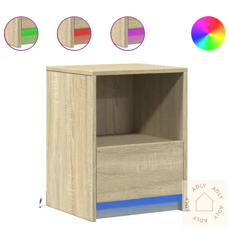 Holdbart materiale: Nattbordene er laget av konstruert tre av høy kvalitet. Dette gir en slitesterk struktur med en jevn og pen overflate. Materialet er kjent for sin styrke, stabilitet og motstandsdyktighet mot fukt, noe som gjør det til et smart valg for nordisk klima.Rikelig med oppbevaringsplass: Enten du ønsker å organisere bøker, elektronikk, små hagemøbler eller hverdagsting, byr nattbordet på gode oppbevaringsmuligheter. Alt du trenger til kveldsrutinen din, er lett tilgjengelig og godt organisert.RGB LED-lys for en hyggelig atmosfære: Skap stemning etter humør med integrerte RGB LED-lys. Du kan enkelt tilpasse både modus, farge og lysstyrke via den medfølgende funksjonen, og gjøre interiøret enda mer personlig. Perfekt for rolige kvelder eller som nattlys.Enkelt å vedlikeholde: Den glatte overflaten sørger for at vedlikehold er minimalt—det holder ofte med en lett fuktet klut for å holde møblene rene og pene. Ideelt for deg som setter pris på praktiske løsninger hjemme.Advarsel: