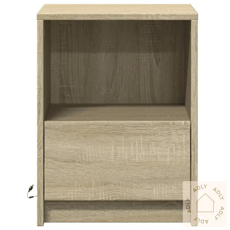 Produktet har en USB-kontakt og krever tilkobling til en sertifisert 5V USB-strømkilde (ikke inkludert).Farge: sonoma eikMateriale: konstruert treMål: 38 x 34 x 50 cm (B x D x H)Maksimal lastekapasitet (totalt): 50 kgMaksimal lastekapasitet (skuff): 5 kgMaksimal lastekapasitet (laminert plate): 40 kgMontering kreves: jaLeveransen inneholder:2 x nattbordLegal Documents: