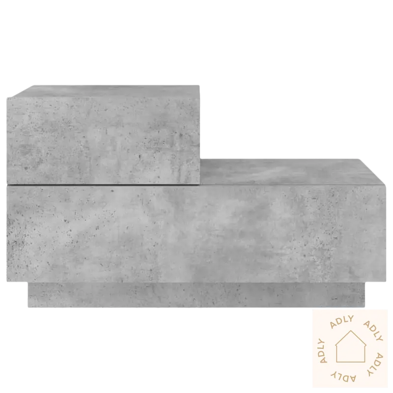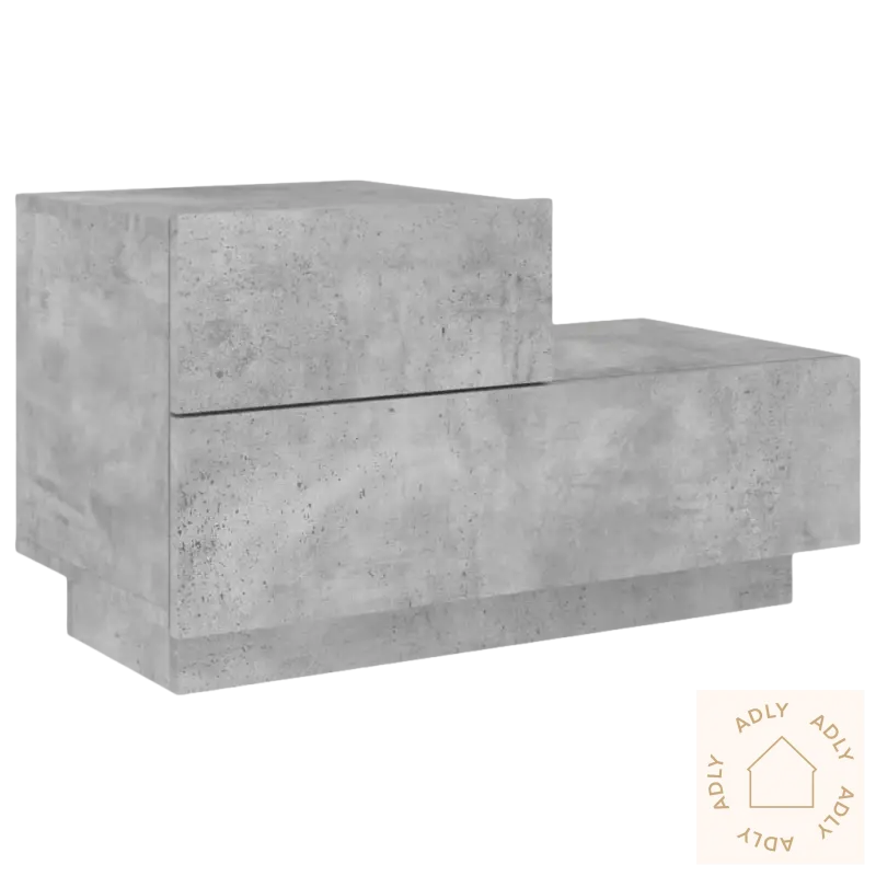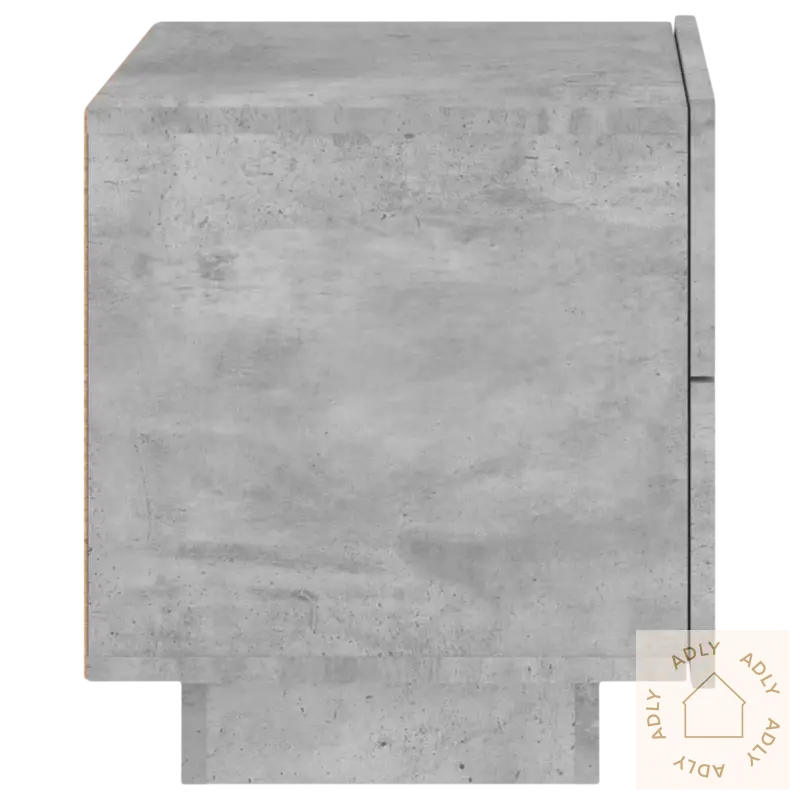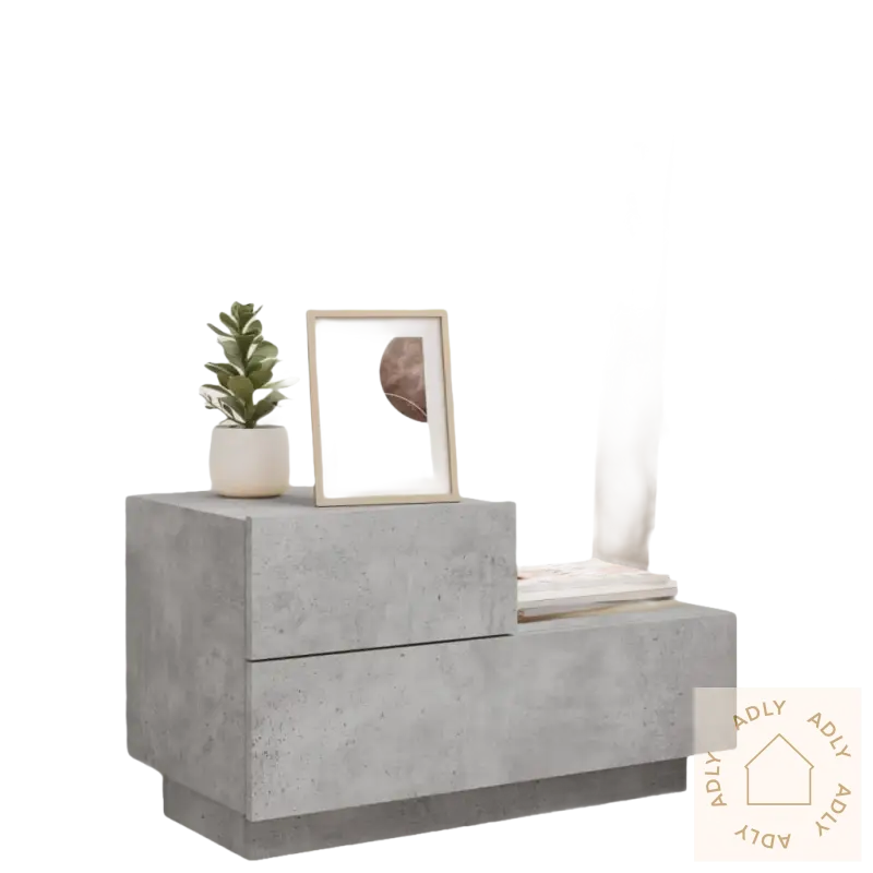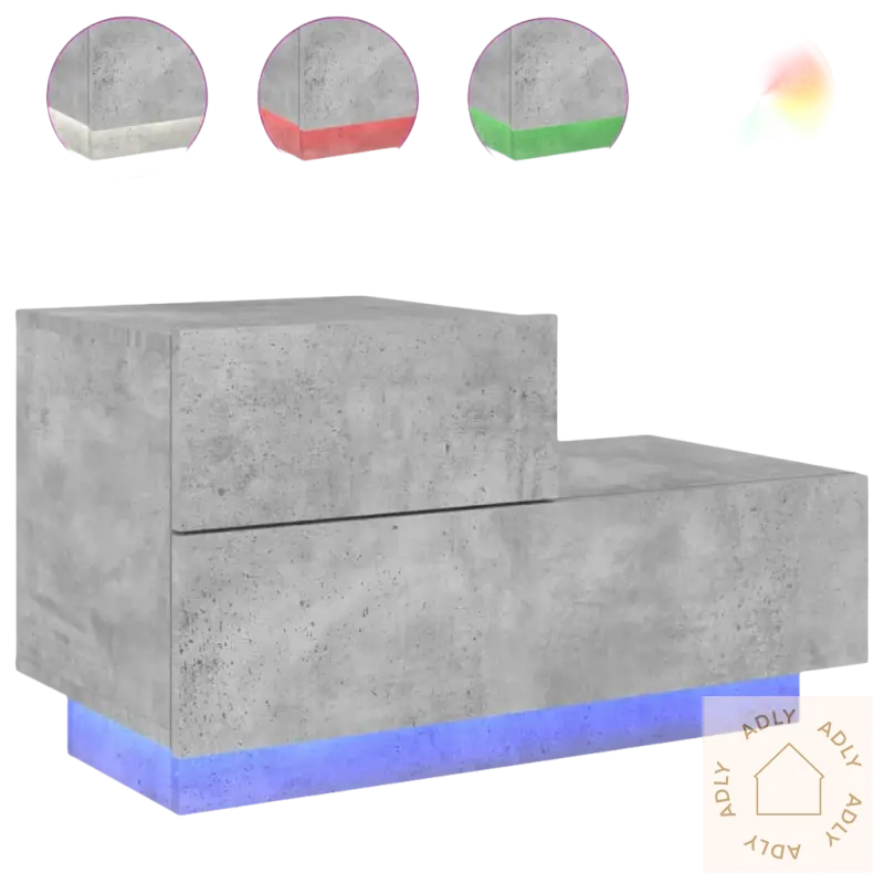 Slitesterkt materiale: Laget i konstruert tre av høy kvalitet som gir nattbordet en glatt overflate, solid stabilitet og god motstandsdyktighet mot fukt. Dette betyr at det tåler daglig bruk og holder seg flott over tid.RGB LED-lys: Med innebygde RGB LED-lys får du muligheten til å skape stemning i soverommet. Lysene kommer med flere menyer for å stille inn ulike farger etter humør eller anledning, eller sette dem til å skifte farge automatisk for ekstra wow-effekt.Rikelig med lagringsplass: Du får god plass til å holde tingene dine ryddige og lett tilgjengelige. Perfekt for magasiner, bøker, fjernkontroller eller andre småting du vil ha innen rekkevidde.Visningsmulighet: Den robuste toppen av medieskapet er ideell når du vil vise frem favorittdekor, som bilder, vaser eller potteplanter – alt med det elegante betonggrå finish som passer inn med andre møbler til hjemmet eller hagemøbler om du ønsker en helhetlig stil.Godt å vite: