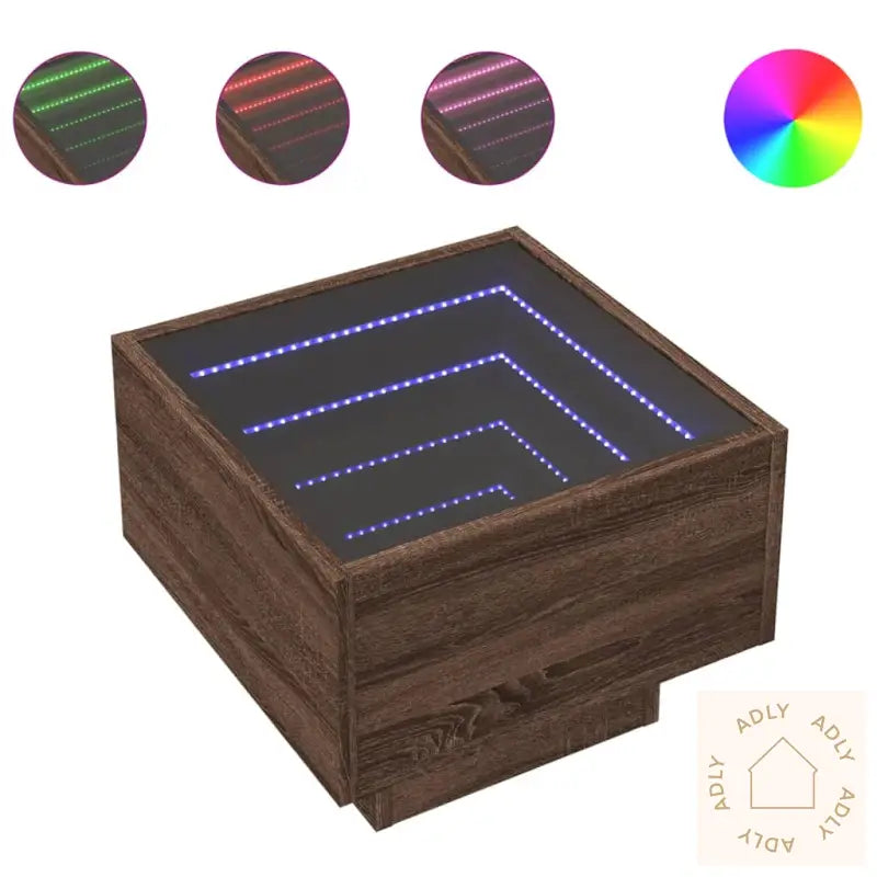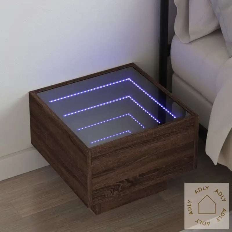 Dette nattbordet med LED infinity-speil er et tidløst og moderne tilskudd til møbler til hjemmet ditt. Det kombinerer stilfull design med praktiske funksjoner, og gir både lys og lagringsplass ved sengen.