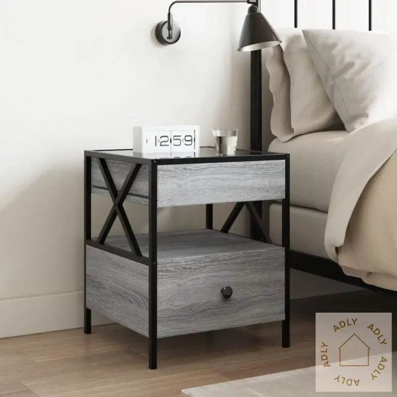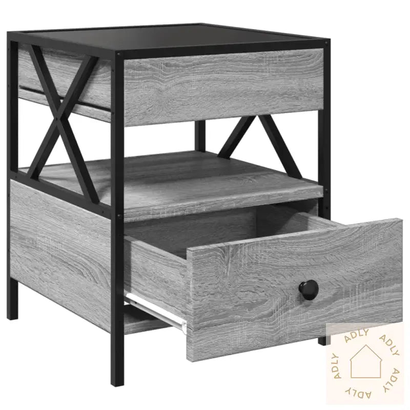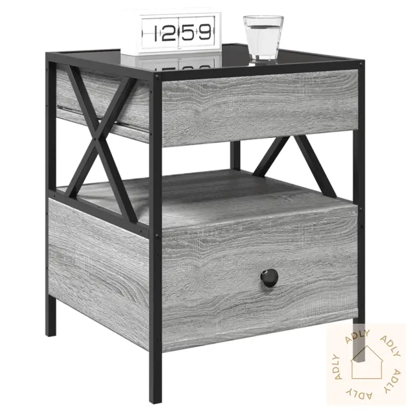 Produktet har USB-tilkobling og krever en godkjent 5V USB-strømkilde (følger ikke med).Farge: grå sonoma, som enkelt matcher ulike stiler og møbler.Materialer: konstruert tre, glass og stål for best mulig holdbarhet og stødighet.Mål: 40 x 40 x 51 cm (L x B x H) gir rikelig med plass uten å oppta for mye rom.Maksimal lastekapasitet: 40 kg – passer perfekt dersom du har mange ting du vil oppbevare.Maksimal lastekapasitet (speiltopp): 5 kgMaksimal lastekapasitet (skuff): 5 kgMaksimal bæreevne (laminat): 20 kgInkluderer LED-lysMontering kreves.