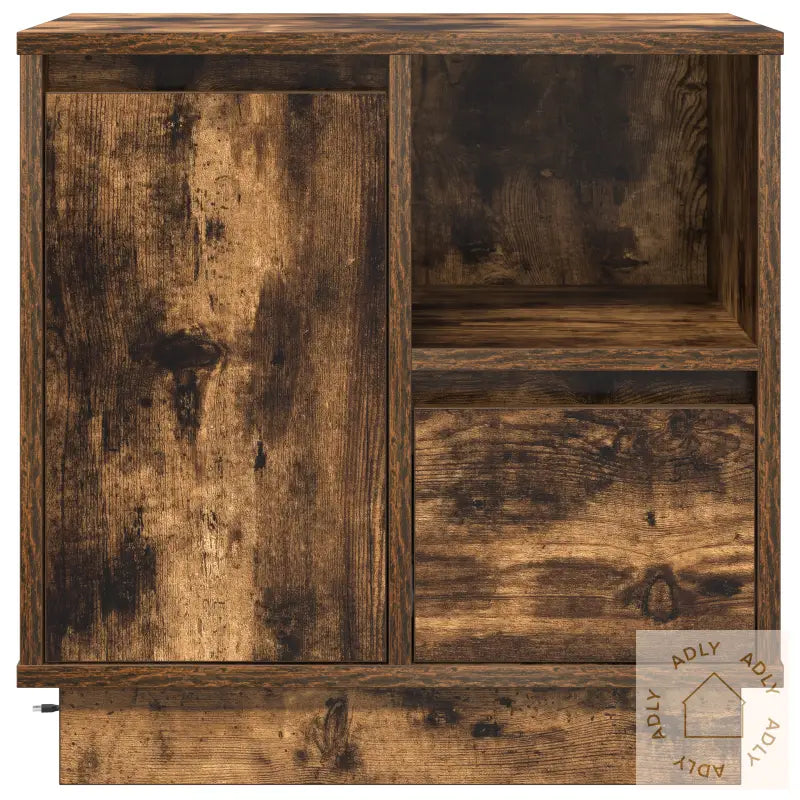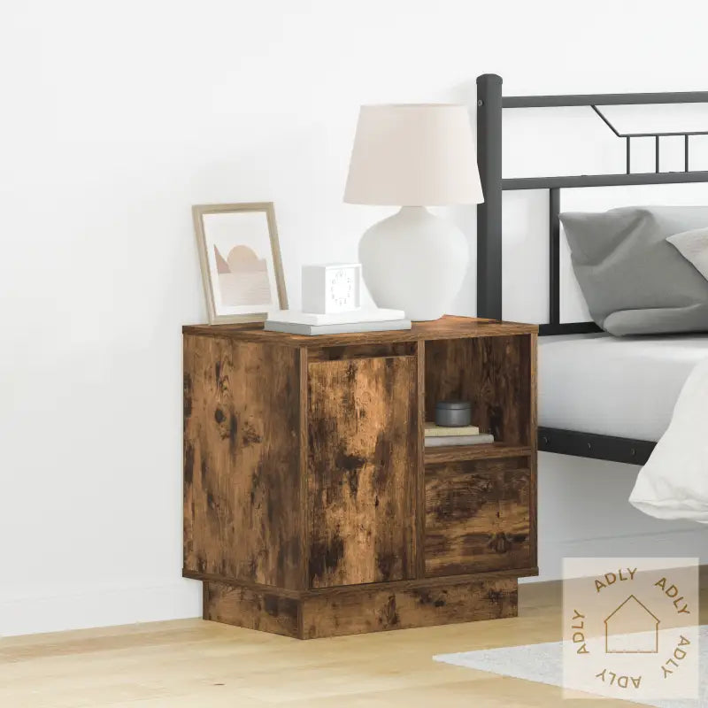 Dette nattbordet tilbyr en moderne look som kombinerer funksjonalitet med et stilig uttrykk, perfekt for deg som ønsker praktiske møbler til hjemmet. Den røkte eikefinishen gir en luksuriøs og lun stemning til soverommet, mens den kompakte utformingen sørger for at bordet enkelt får plass ved sengen – ideelt også for mindre rom. Det er et smart valg som på en diskret og elegant måte kompletterer soveromsinnredningen din.