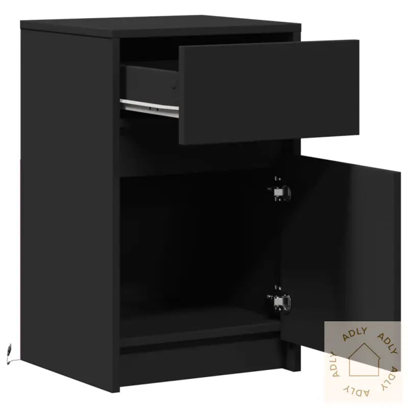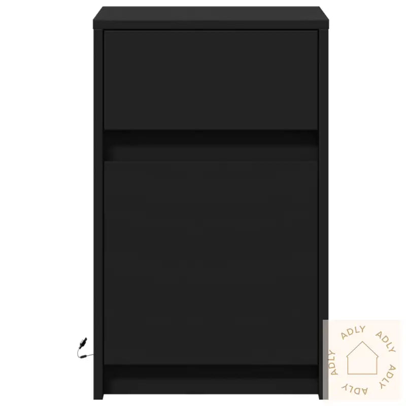 LED-belysningen kommer med USB-kontakt og krever en sertifisert 5V USB-strømkilde (ikke inkludert).Farge: svartMateriale: konstruert treMål: 38 x 34 x 61 cm (B x D x H)Maksimal lastekapasitet (totalt): 50 kgMaksimal lastekapasitet (skuff): 5 kgMaksimal lastekapasitet (rom): 40 kgMontering kreves: jaLegal Documents: