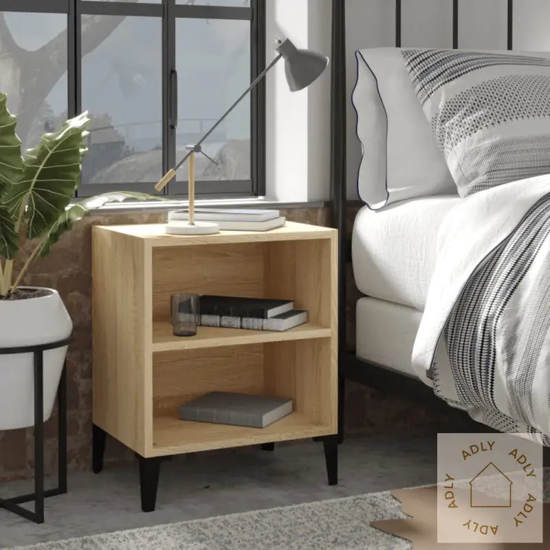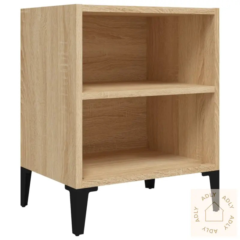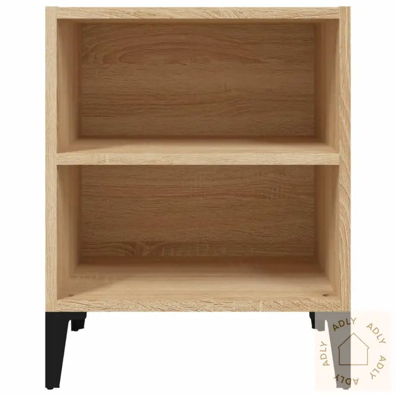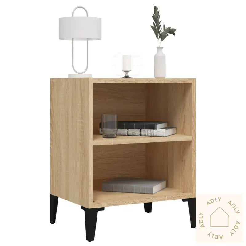 Dette nattbordet har solide metallben som gir ekstra stabilitet og holdbarhet. Med to praktiske hyller får du rikelig lagringsplass, perfekt for å holde favorittbøkene, mobiltelefonen eller andre nødvendigheter organisert og lett tilgjengelig ved sengen. Overflaten i konstruert tre er slitesterk og enkel å rengjøre – bare tørk over med en fuktig klut når det trengs. Det industrielle designet gjør at nattbordet passer like godt sammen med moderne møbler til hjemmet som sammen med andre produkter i sonoma eik. Dette er et smart valg om du vil ha praktiske oppbevaringsløsninger med stil.