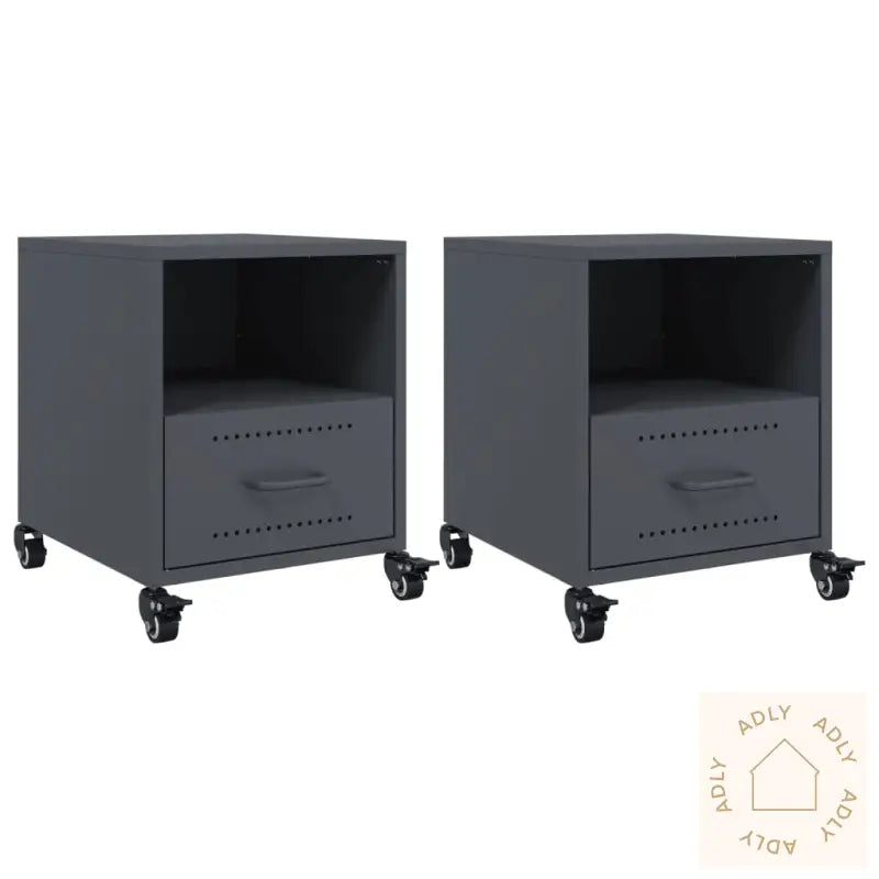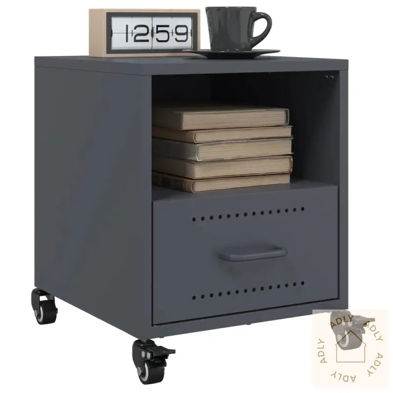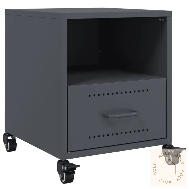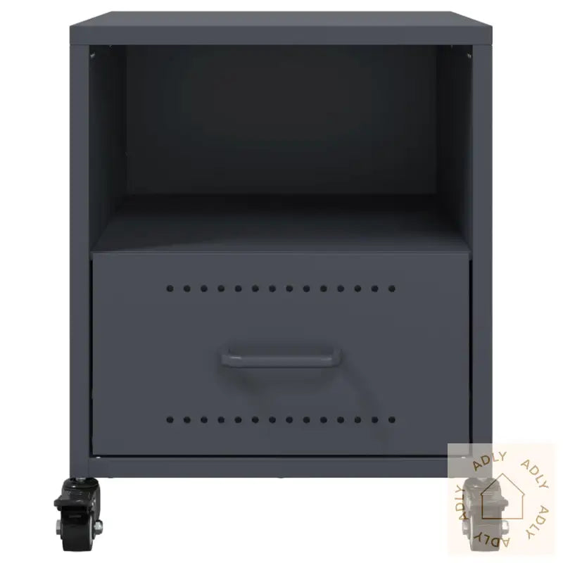 Praktisk håndtak: Det stilrene håndtaket gir deg enkelt tilgang til innholdet i skapet, og tilfører et litt industrielt preg som kler designet.Farge: AntrasittMateriale: Kaldvalset stålMål: 36 x 39 x 43,5 cm (L x B x H)Med 1 skuffMed 1 romMontering kreves: JaLeveransen inneholder:2 x nattbord