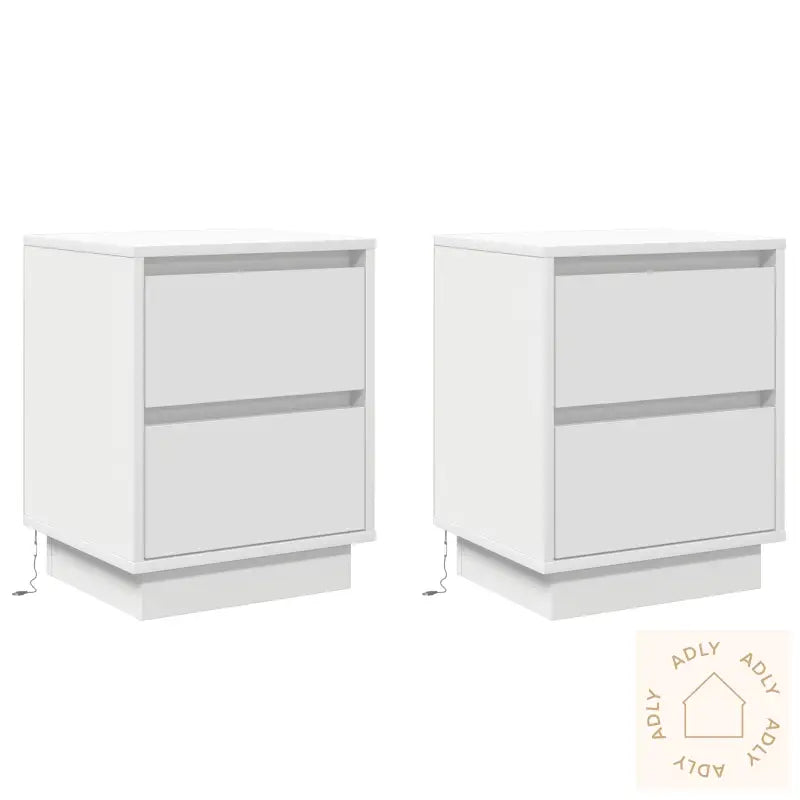 Dette paret med nattbord kombinerer moderne stil med praktisk funksjonalitet, og passer perfekt for deg som vil ha smarte møbler til hjemmet. Den elegante hvite MDF-overflaten gir et tidløst preg på rommet, samtidig som du får en solid og praktisk plass til å sette fra deg lamper, klokke eller personlige favoritter. Du kan enkelt holde orden på alt, og soverommet ditt får et enda ryddigere og mer stilfullt uttrykk.