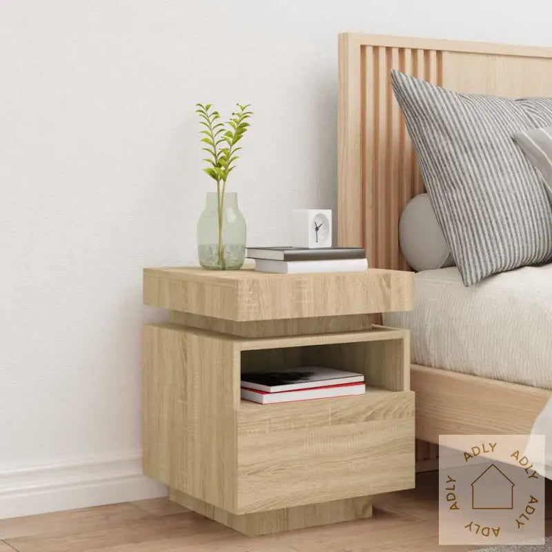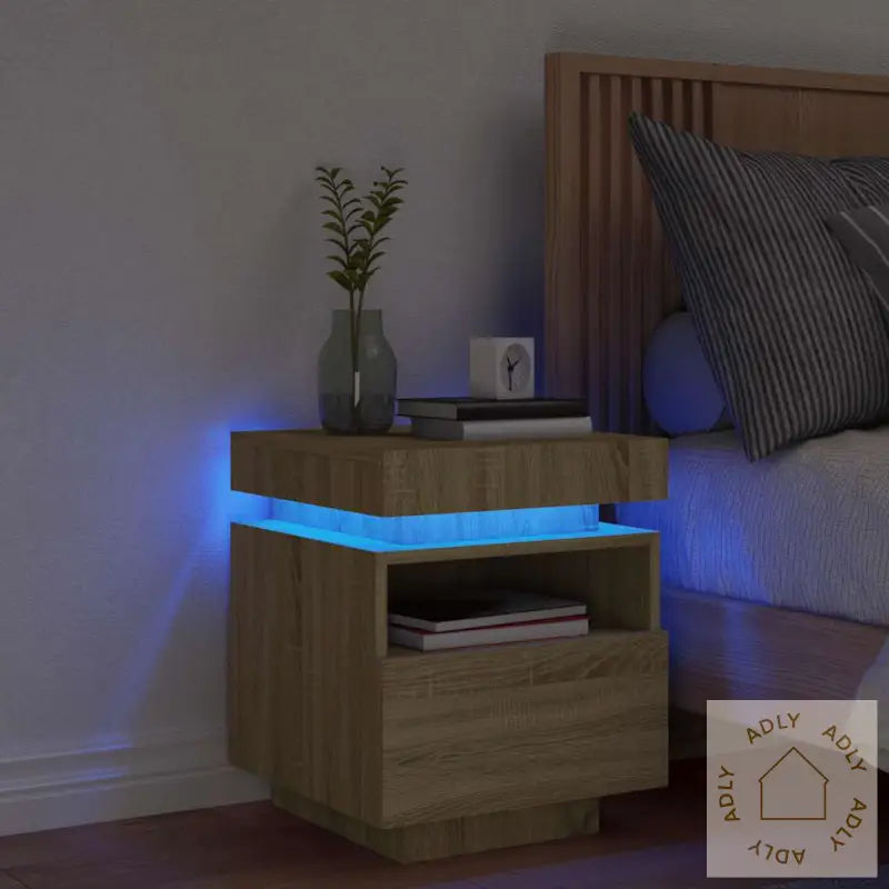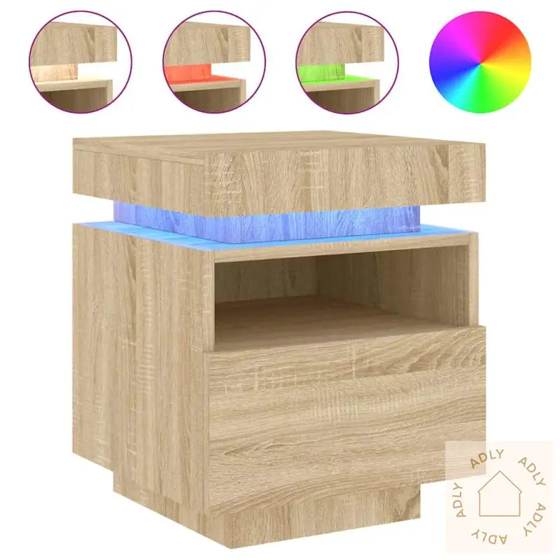 Dette nattbordet med RGB LED-lys kombinerer et moderne, stilig utseende med mange praktiske funksjoner – og blir garantert et blikkfang blant dine møbler til hjemmet.